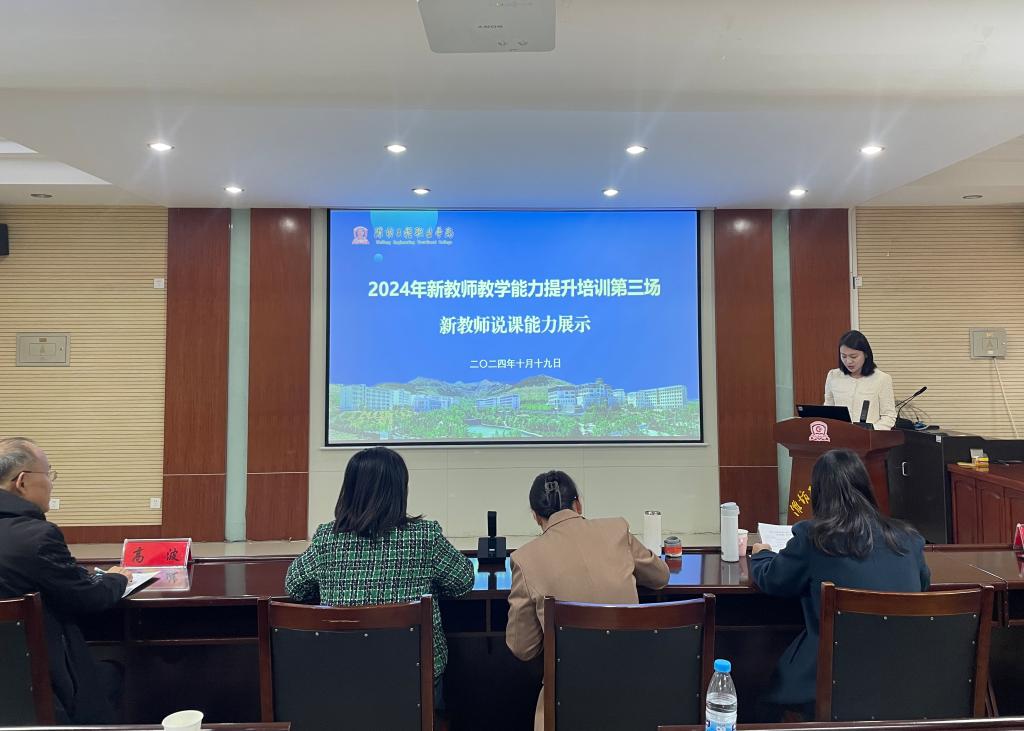 为促进新教师综合素质、专业化水平和创新能力全面提升,10月19日,学院在海岱阁606会议室举行新教师说课能力展示活动。党委委员、副院长赵凤卿出席活动。教务处相关负责人及2024年新入职专任教师参加。