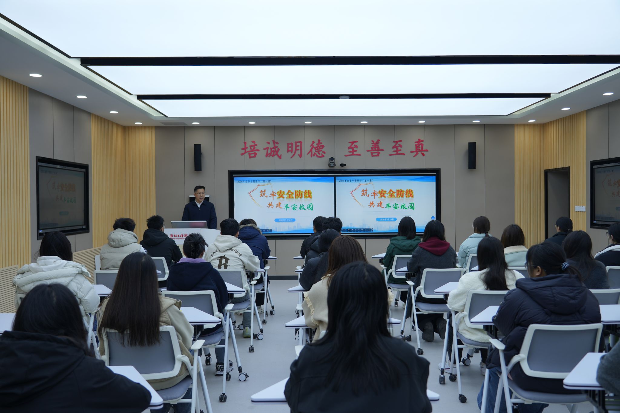 为深入贯彻落实山东省教育厅《关于扎实开展安全开学第一课活动加强校园安全防范工作的通知》要求,切实夯实校园安全基础,3月10日,院长王忠山以《筑牢安全防线,共建平安校园》为题,为全体师生讲授安全开学“第一课”。课程采用同步直播形式覆盖全校,累计观看人数超2万人次。
