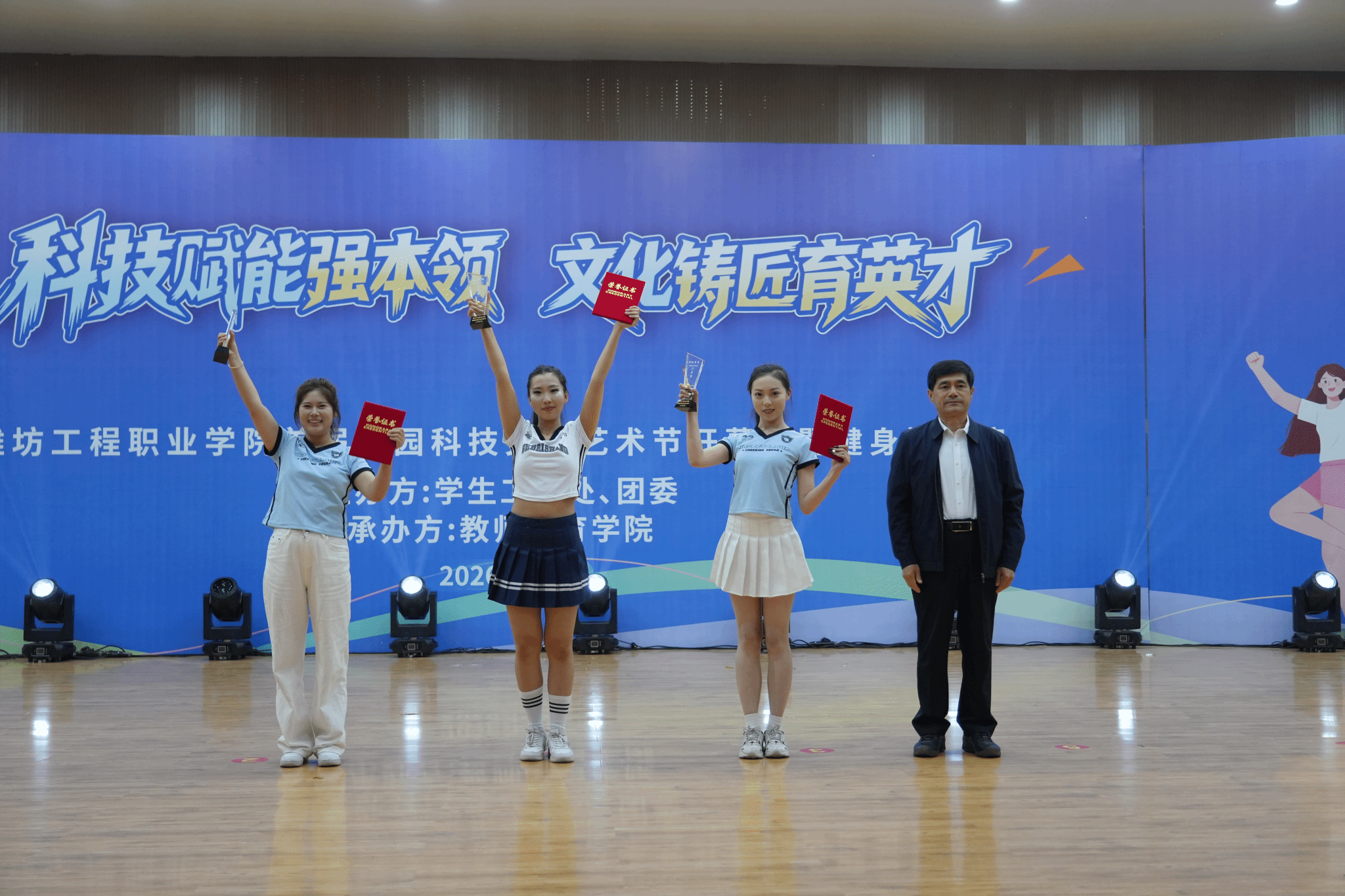 开幕式后,“舞动青春”健身操展演正式拉开帷幕,各代表队活力四射、亮点纷呈,展现了潍工学子昂扬奋进的青春风采,为校园文化建设注入了新活力。