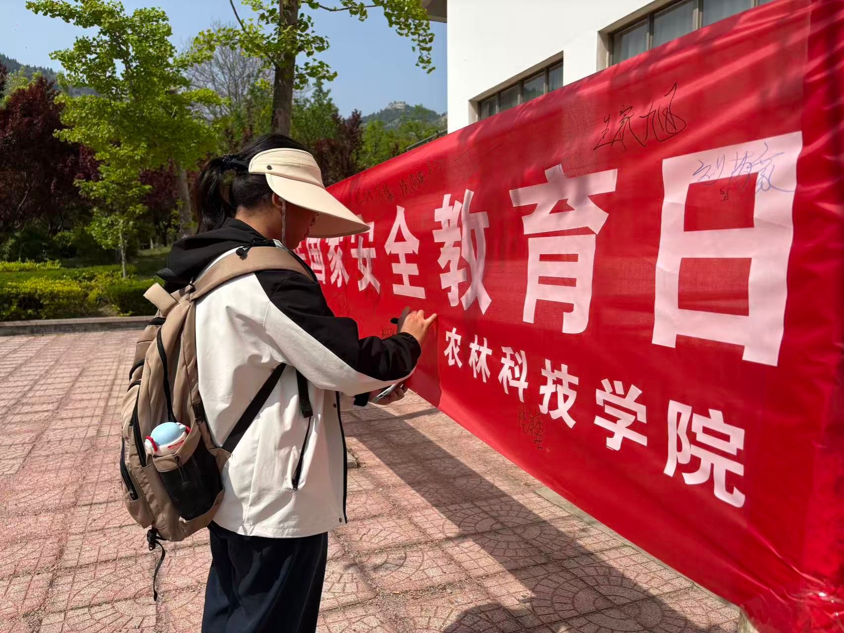 活动当天,在尚德楼一楼大厅内,张贴主题鲜明的宣传海报,吸引过往师生驻足观看、认真学习。活动还悬挂了醒目的宣传条幅,引导师生们积极参与、郑重签名,表达维护国家安全、守护共同家园的坚定决心。除线下宣传外,农林科技学院充分发挥新媒体传播优势,精心创作了图文图解、宣传漫画、微动漫等文化作品,构建起“线上+线下”宣传格局,营造了关注国家安全、共同守护国家安全的浓厚氛围。