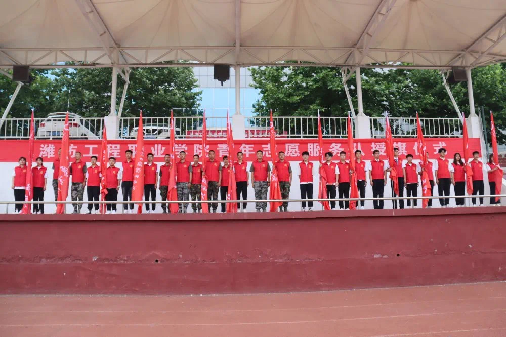 为大力弘扬“奉献、友爱、互助、进步”的志愿精神,进一步推动我院青年志愿服务专业化、制度化、常态化,6月10日下午,我院在学校操场为14支青年志愿服务队举行了授旗仪式。副院长韩振华,党委委员、宣传部部长赵立增出席活动,团委学生处负责人,,青州市阳光社工服务中心负责人,各系(院)团总支书记、辅导员,青年志愿服务队全体成员参加活动。