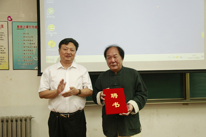 报告会前,肖明胜向朱振立颁发了“培真书院特聘专家”证书,朱振立向学院古琴文化博物馆赠送了1床自己所斫古琴“大圣遗音”。