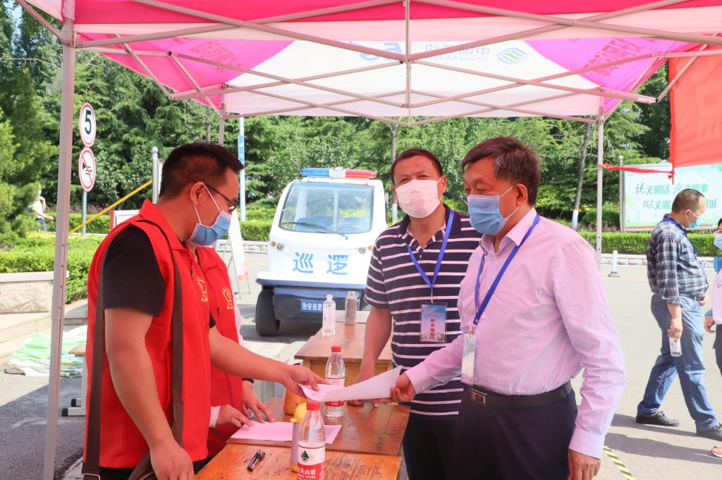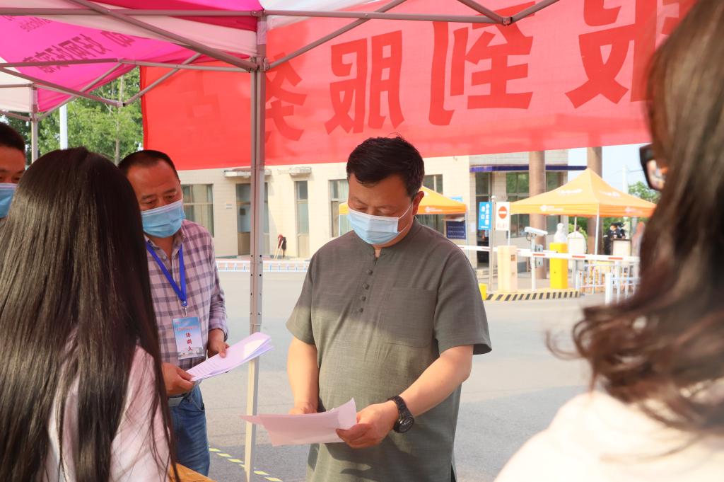 学生返校报到现场,学院党委书记肖明胜、院长高立伯及其他院领导到学院东门和学生公寓等看望慰问返校学子,与现场工作人员亲切交谈,并检查指导各项入校报到工作。