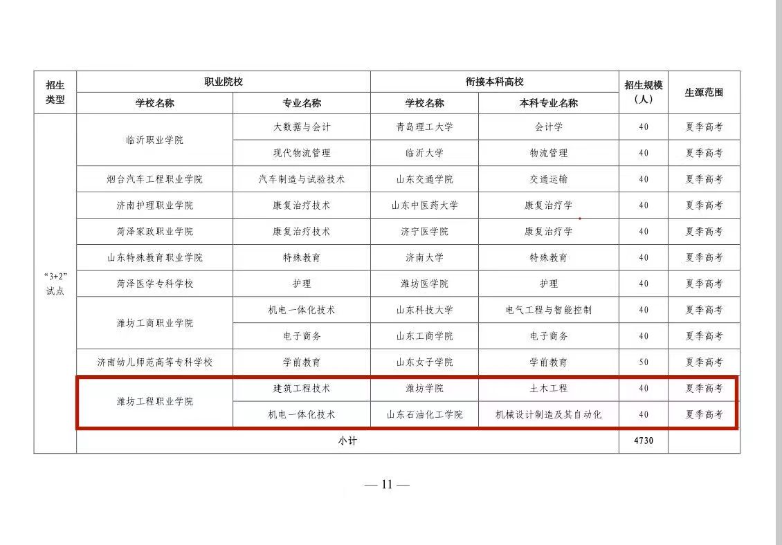 2022年山东省职业院校与本科高校对口贯通分段培养试点任务下达,我院机电一体化技术、建筑工程技术2个专业获批“3+2”对口贯通分段培养本科试点专业。自2022年起,我院将与山东石油化工学院机械设计制造及其自动化、潍坊学院土木工程专业联合培养 “3+2”贯通培养本科学生。