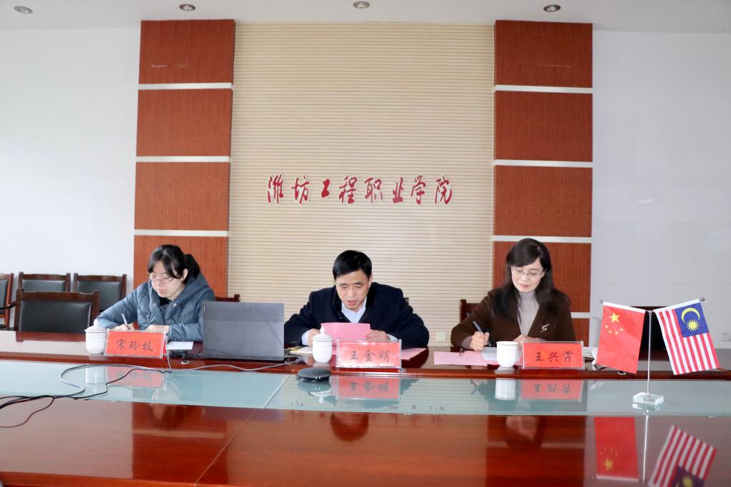 2月22日下午,学院与马中商务理事会召开中马(潍坊)职业教育联盟线上筹备会。副院长王金明,潍坊市产教融合研究院副院长冯秀红、马中商务理事会总执行长李泰康等出席会议。国际交流学院负责人及相关人员参加会议。
