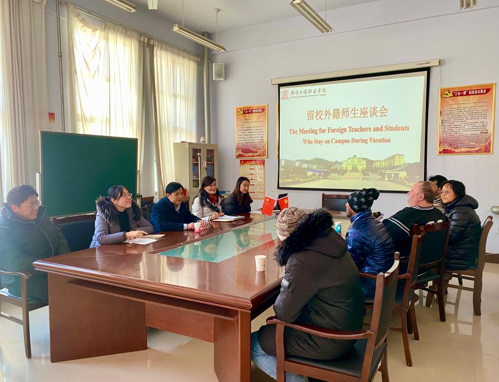 为切实做好寒假留校外籍师生管理服务工作,1月13日下午,国际交流学院在尚德楼202会议室召开留校外籍师生座谈会,副院长王金明出席座谈会并发表讲话。