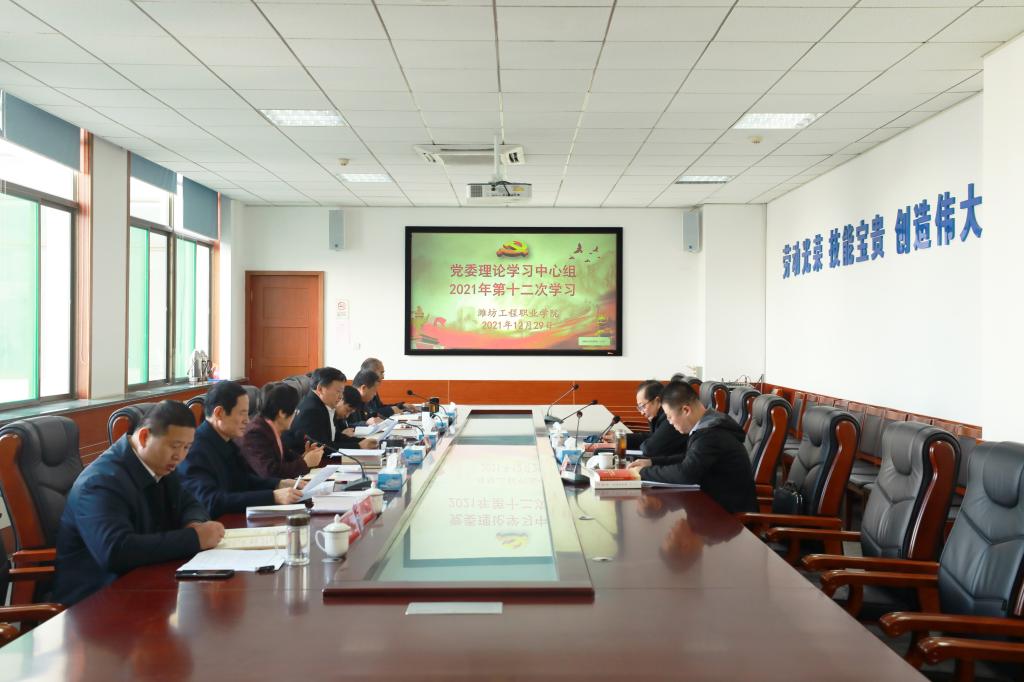 12月29日上午,学院党委理论学习中心组在海岱阁220会议室开展2021年第十二次集中学习,深入学习习近平总书记在党的十九届六中全会上的重要讲话精神和习近平总书记关于国家安全和意识形态工作的重要论述。党委书记肖明胜主持学习会并讲话。市委驻青州综合督导组领导齐延伟、于瑞泉到会指导,中心组其他成员参加会议,部分中层干部列席会议。