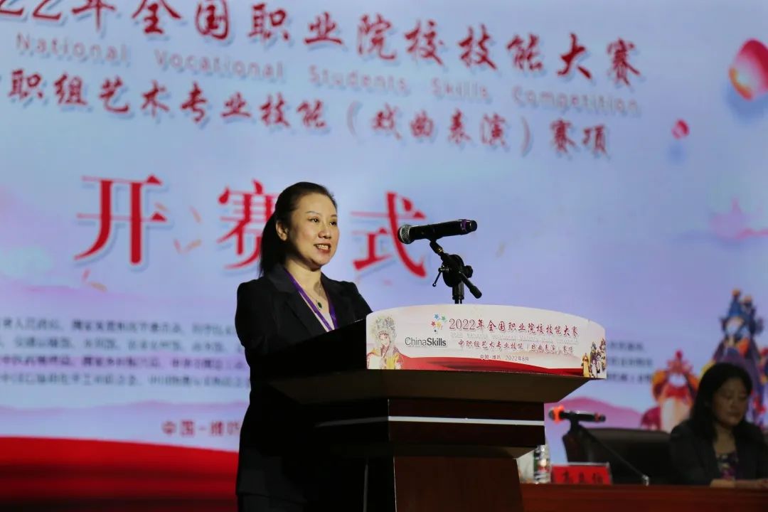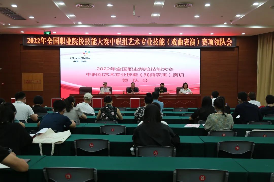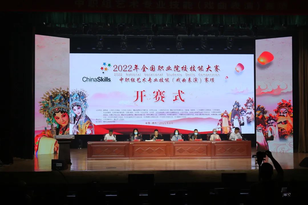 8月14日,2022年全国职业院校技能大赛中职组艺术专业技能(戏曲表演)赛项开赛式在潍坊市工人文化宫举行。赛项由教育部、天津市人民政府、山东省人民政府、国家发展和改革委员会等36个部委单位主办,潍坊工程职业学院承办。
