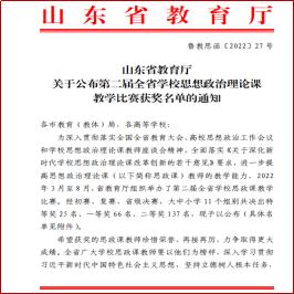 近日,山东省第二届全省学校思想政治理论课教学比赛获奖名单公布,我院思政课教师石钰荣获高职高专概论组二等奖。