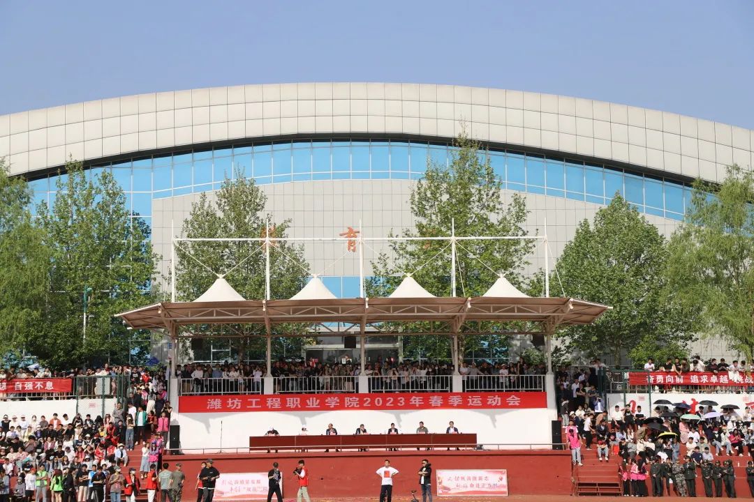 开幕式上,伴随着旋律激昂的《运动员进行曲》,运动会入场式开始。国旗护卫队、校旗方队、裁判员方队和运动员方队以及各单位方队以饱满的精神状态、整齐划一的列队依次入场。各方队意气风发、斗志昂扬,迈着稳健有力的步伐,依次通过主席台,展示出潍工师生踔厉奋发、勇毅前行的精神面貌。教师教育学院、凤凰艺术学院和士官学院的同学们带来了气势宏大的开幕式表演,为全体师生呈现了一场视听盛宴。