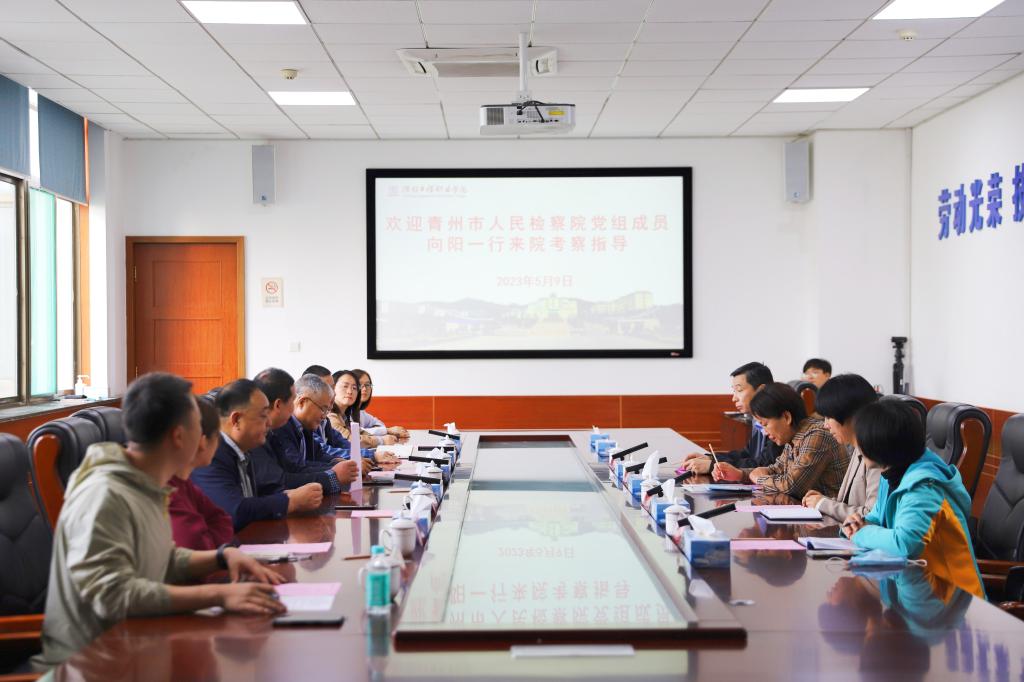 5月9日,青州市人民检察院党组成员向阳一行来我校调研,就进一步加强检校合作进行了交流。学校领导赵庆松出席活动,农林科技学院、机电工程学院、马院心理健康教育中心、法治办等单位负责同志参加座谈会。