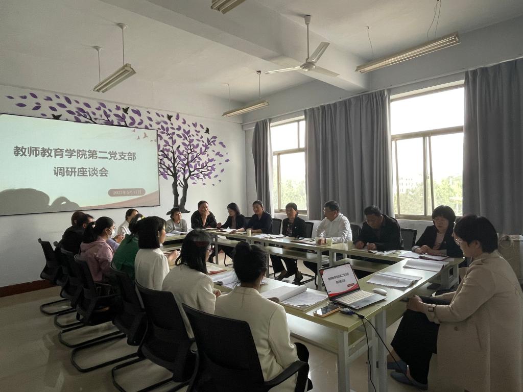 他指出,教师教育学院党总支要紧密结合国家各项政策和学校党委重点工作,积极开拓创新,不断争创高水平成果,积极探索高质量特色发展的新路径。他强调指出,教师教育学院党总支要在支部建设上出特色,要着力强化理论武装,充分发挥党组织战斗堡垒作用和党员模范带头作用,在聚力助推“双高”创建中创优争先。要在文化建设上出特色,提升专业内涵,建强人才队伍,不断加强学前专业特色文化建设。要在学生服务上出特色,加强学生思想政治工作,多形式开展课外活动,丰富活动内容,提供个性展示平台,构建分层次、多形式、重实效的辅导员培训体系,提升管理服务水平。要在服务地方上出特色,充分发挥专业师资优势,围绕国家和地方重大发展战略,积极做好服务区域教育和文化建设工作,在服务中全面提升教学科研水平,积极打造品牌过硬支部。