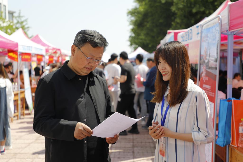 肖明胜、高立伯在活动现场,与多家用人单位和毕业生进行了沟通交流,了解当前用人单位招聘需求及毕业生的求职情况。双选会分师范类专场和综合类同步举行,现场气氛热烈、秩序井然。各家用人单位主动介绍岗位需求、招聘条件、薪资待遇等情况,学生积极投递简历,积极关注用人单位招聘信息,详细了解用人需求,主动寻找适合自己的岗位。10余家用人单位还进行了面试、宣讲活动,与相关二级学院就校企人才培养、实训交流机制等方面进行深入交流。为了解我校毕业生的社会需求和社会评价情况,现场还向参会用人单位发放了调查问卷500余份,征求用人单位对我院专业设置、毕业生技能评价、职业稳定性意见。