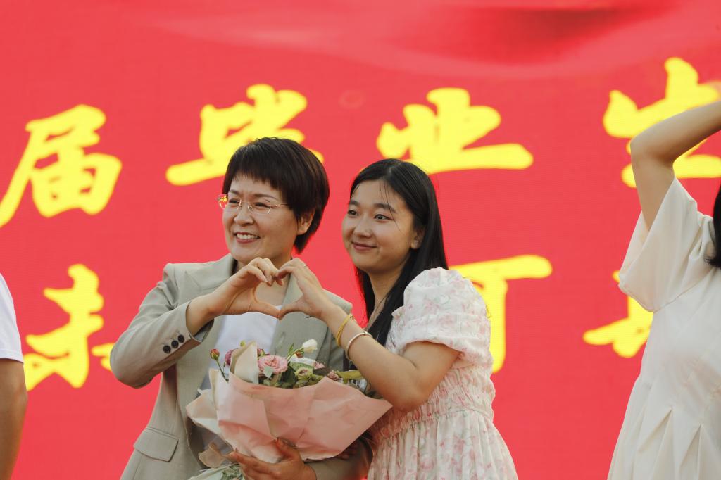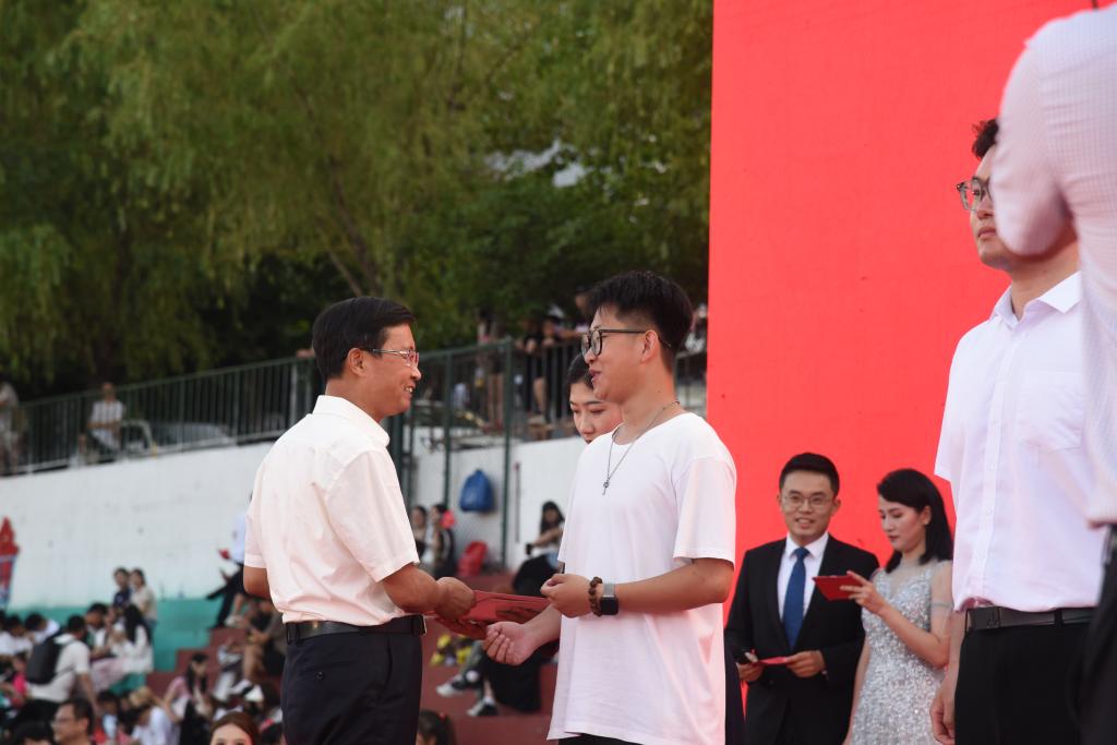 副院长王金明宣读了表彰决定,学校领导为省级、市级和校级优秀毕业生代表颁奖。辅导员代表、毕业生代表、在校生代表进行情景式发言。毕业生代表还向坚守在教学、教辅等平凡岗位上的教职工代表献花,感谢他们为学生成才、学校发展做出的贡献,为家长代表送上鲜花,感恩家长们的陪伴和付出。