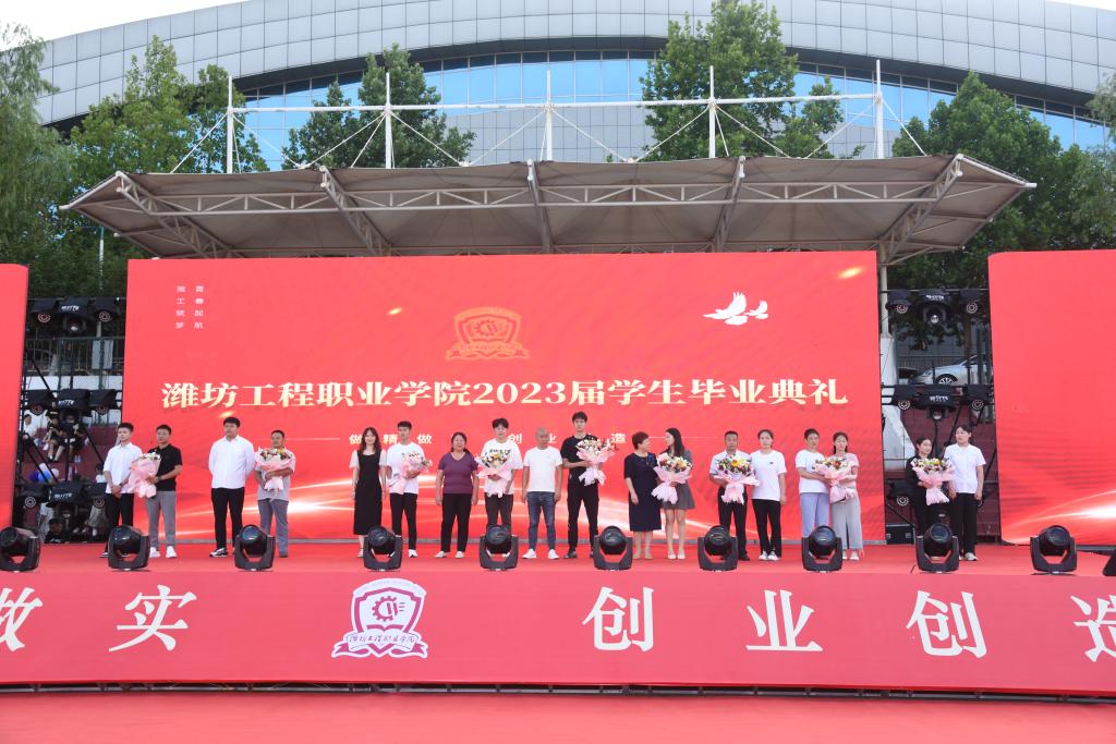 6月29日,潍坊工程职业学院2023届毕业生毕业典礼在体育场隆重举行。学校党委书记吕尧良、院长王忠山,潍坊市第十八届人民代表大会社会建设委员会副主任委员、潍坊工程职业学院原党委书记肖明胜,潍坊市第十八届人民代表大会法制委员会副主任委员、潍坊工程职业学院原党委副书记、院长高立伯,学校领导班子其他成员出席典礼,学校中层干部、全体辅导员、各二级学院(部)教师代表、家长代表及6513名毕业生参加现场典礼。