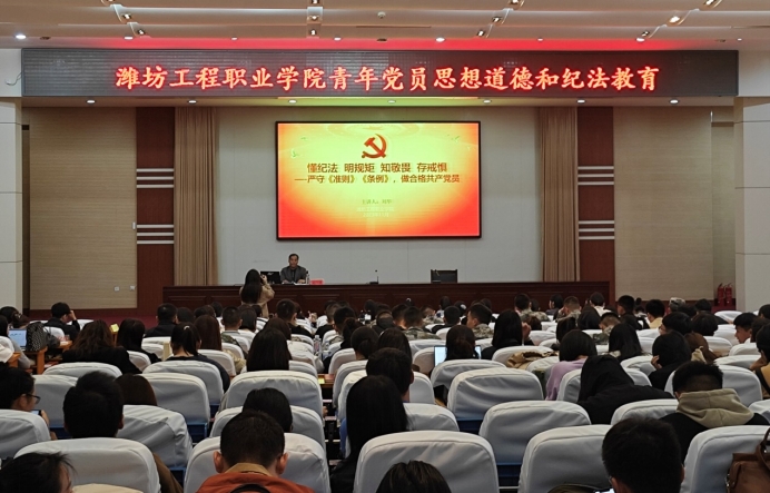 为深入开展学习贯彻习近平新时代中国特色社会主义思想主题教育,11月3日上午,学院在海岱阁报告厅开展青年党员思想道德和纪法教育专题培训,党委委员、纪委书记、监察专员、三级高级监察官刘华以“懂纪法 明规矩 知敬畏 存戒惧——严守《准则》《条例》,做合格共产党员”为题作报告,学院青年党员和2023年下半年党员发展对象参加培训。