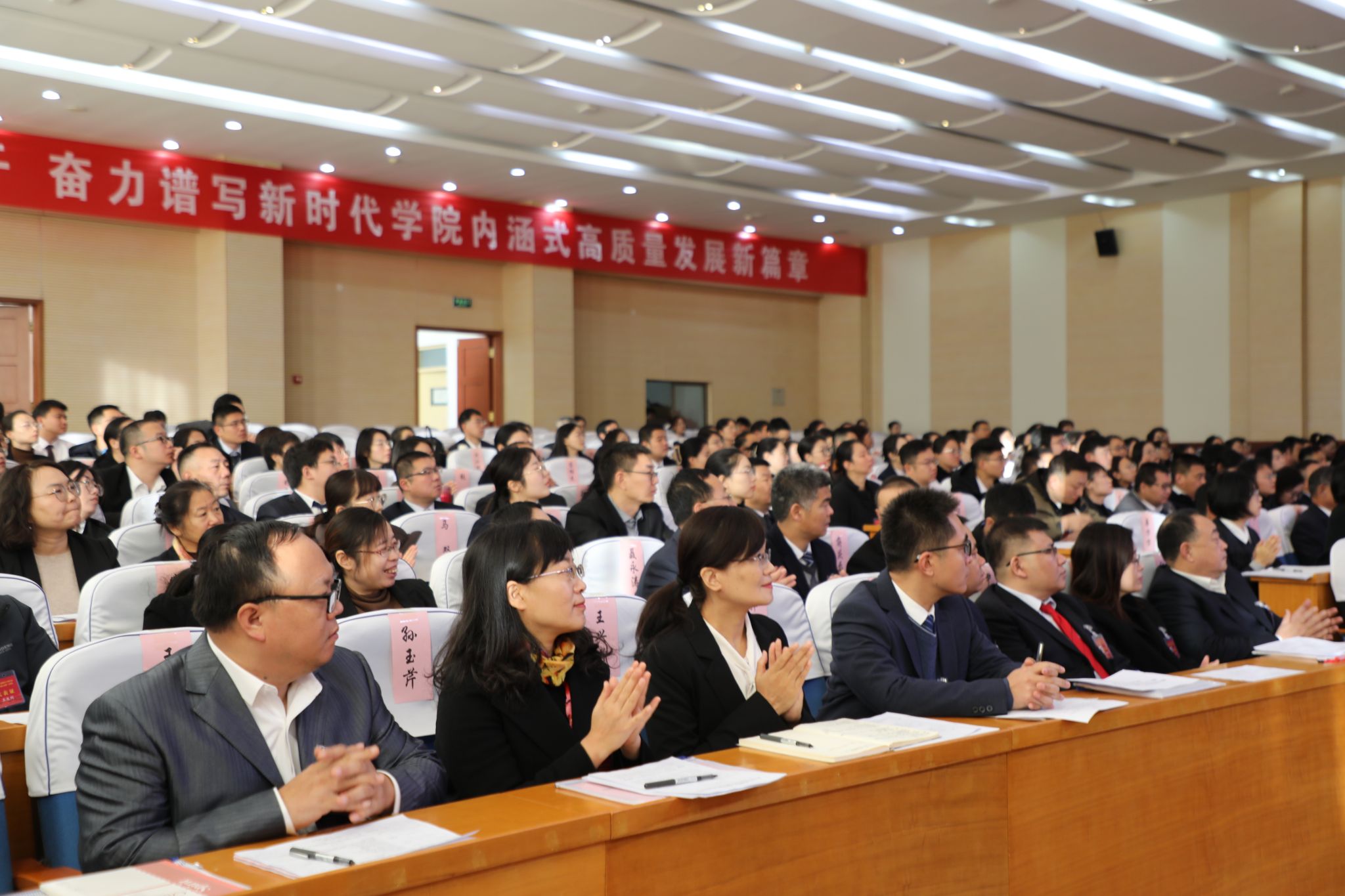吕尧良致开幕词。他指出,学院第一届教职工代表大会以来,学院党委团结带领全体教职工,坚持以习近平新时代中国特色社会主义思想为指导,深入学习贯彻落实党的二十大和二十届二中、三中全会精神,认真贯彻落实全国、全省教育大会精神,全面落实立德树人根本任务,紧扣高质量发展主线,攻坚克难、奋发有为,各项事业都取得了长足进步。他强调,“双代会”的召开对于全院上下坚定信心、攀高向强、再谱新篇,推动学院内涵式高质量发展必将产生重要而深远的影响。希望各位代表切实增强使命感和责任感,积极履行职责,发扬民主、求真务实,紧紧围绕事关学院发展大局和师生普遍关注的重要问题献计献策,将会议开成团结民主、振奋精神、开拓进取的大会。