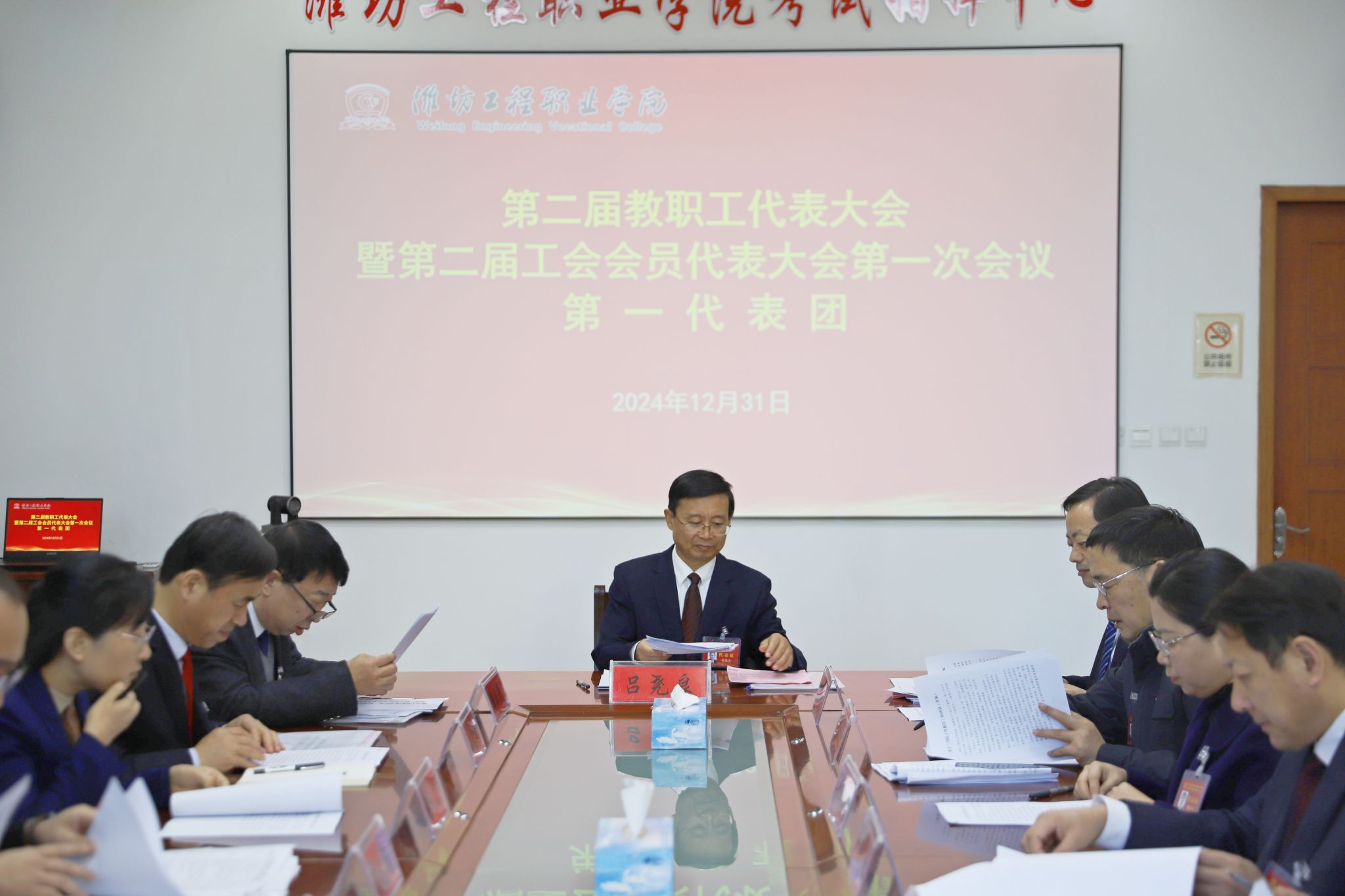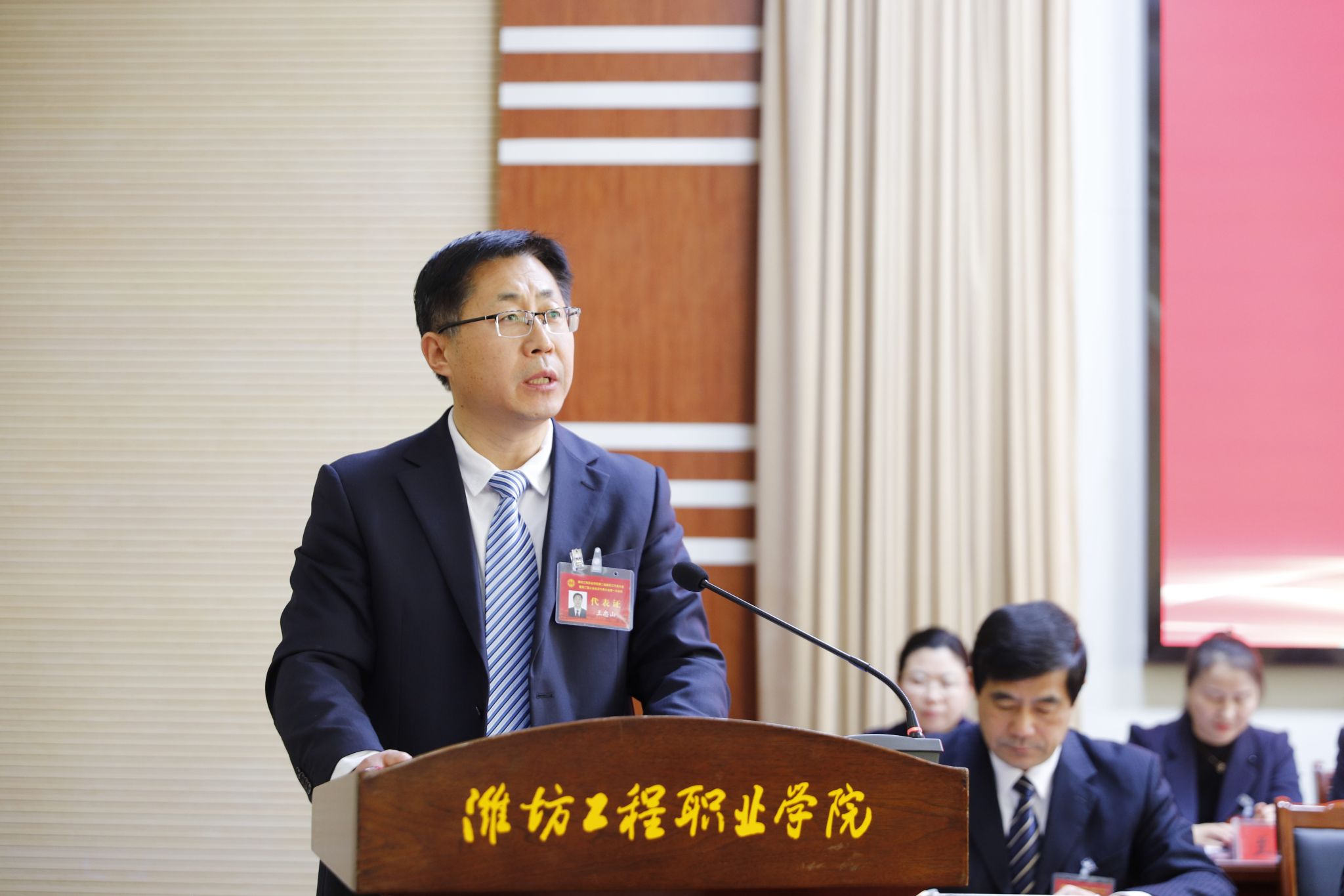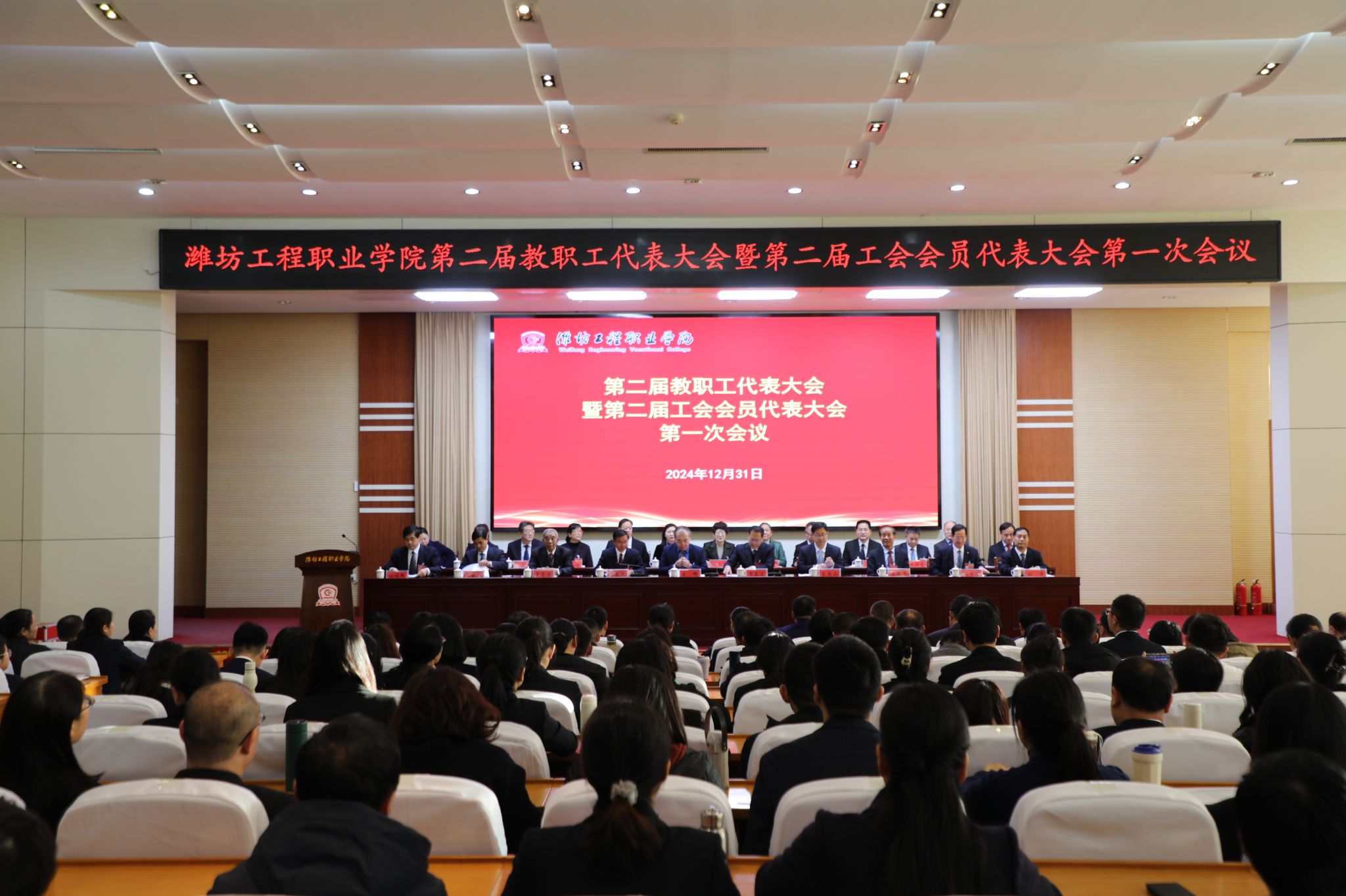 凝心聚力谋发展,砥砺前行开新篇。12月30—31日,潍坊工程职业学院第二届教职工代表大会暨第二届工会会员代表大会第一次会议在学术报告厅召开。学院党委书记吕尧良、院长王忠山等学院领导出席会议。山东省教育工会副主席王辉,潍坊市总工会党组成员、副主席宋乐昌应邀出席会议。正式代表、列席代表、特邀代表共220余人参加会议。会议由党委副书记冯永光主持。