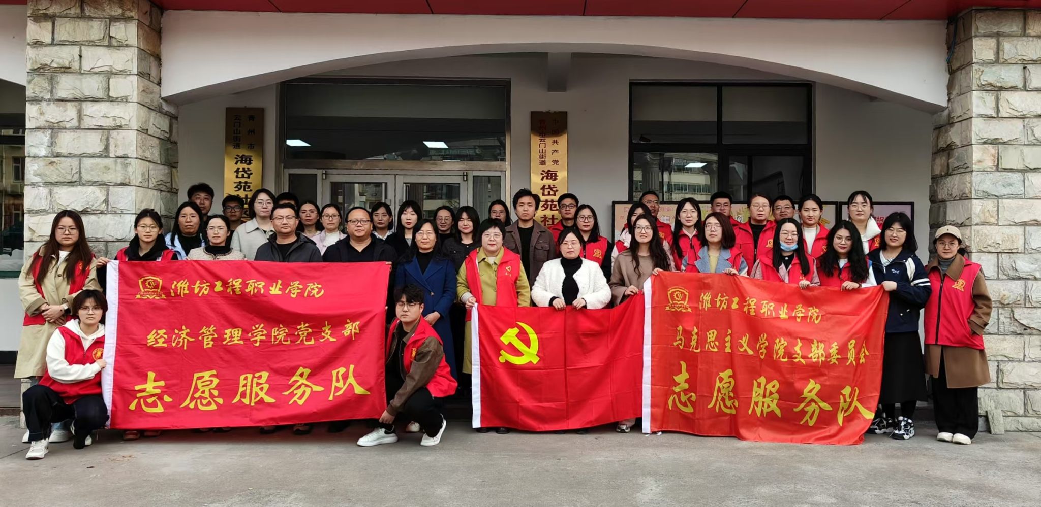 为进一步加强党建引领基层治理,充分发挥党员先锋模范作用,3月13日,马克思主义学院党支部、经济管理学院党支部、网络信息中心党支部组织党员教师及学生代表走进海岱苑社区,开展“党建引领聚合力 校社共建促发展”双报到暨志愿服务活动。