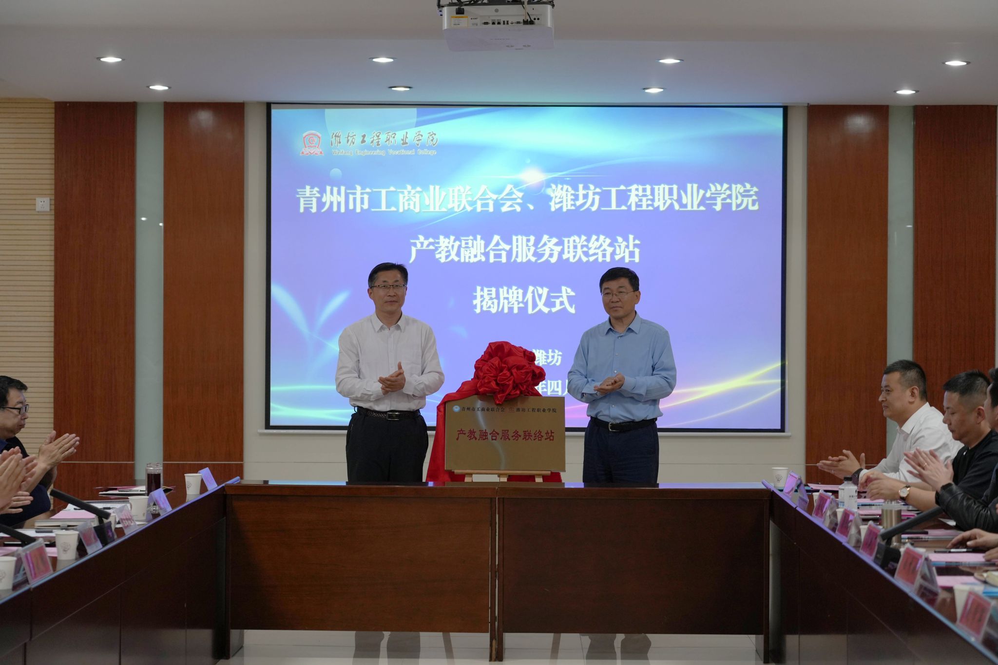对话会上,王忠山与刘学军为“产教融合服务联络站”揭牌。王忠山在致辞中介绍了学院办学历史和高质量发展情况。他表示,学院始终认真贯彻落实党的教育方针,坚决扛牢融入区域经济社会发展的使命责任,坚持扎根青州办学、服务青州发展,持续深化产教融合、校企合作,倾力培养支撑区域产业升级的高素质劳动者和技术技能人才,积极推动构建职业教育与区域发展深度融合的良好生态,学院将以此为契机,拓展校地融合和校企合作广度与深度,在技术攻关、成果转化、人才交流、实习实训等领域开展务实有效合作,为企业高质量发展提供服务,为青州区域经济社会发展作出积极贡献。孟凡林表示,此次活动向全面深化校地、校企合作迈出了重要一步,希望进一步健全工作机制,发挥“产教融合服务联络站”作用,搭建起工商联和学校、企业三方常态互动平台,形成工作合力;对焦需求发力,以人才需求适配、技术创新转化、资源协同共享等为切入点,实现校企合作结硕果;扩大平台效应,将校企共建成果进行宣传推广,扩大影响力和辐射带动力,吸引更多职业院校、民营企业、商会组织、科研机构等积极参与,拓宽校企共建覆盖面。