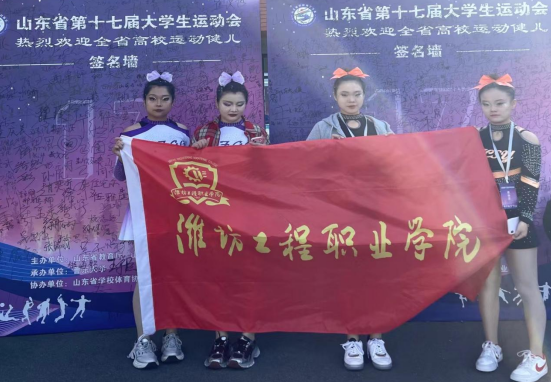 近日,山东省第十七届大学生运动会健美操(啦啦操)比赛在潍坊职业学院举行。经过激烈角逐,我院代表队在双人花球啦啦操、双人街舞啦啦操项目中分别获得二等奖、三等奖。