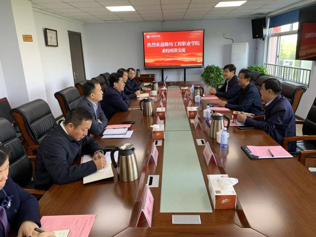 在临沂职业学院,吕尧良一行与临沂职业学院党委书记刘磊,党委委员、副院长张金祥及相关负责人进行座谈交流。双方围绕学校治理、社会服务、人才引进、大学生创新创业等展开深入探讨交流,并实地参观了非物质文化遗产传承教育展览馆、科技馆、党建思政虚拟仿真中心、大学生创新创业孵化基地。