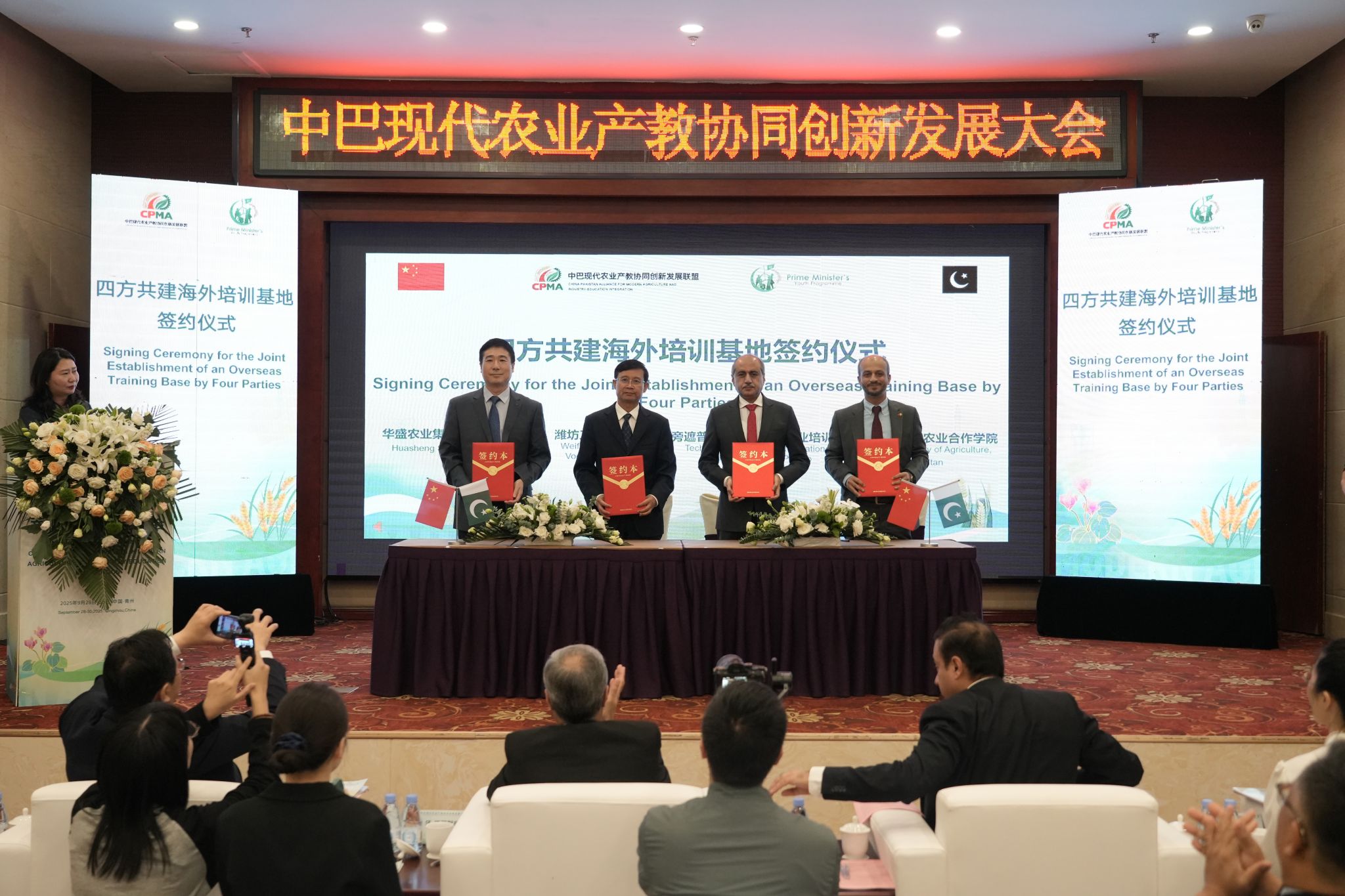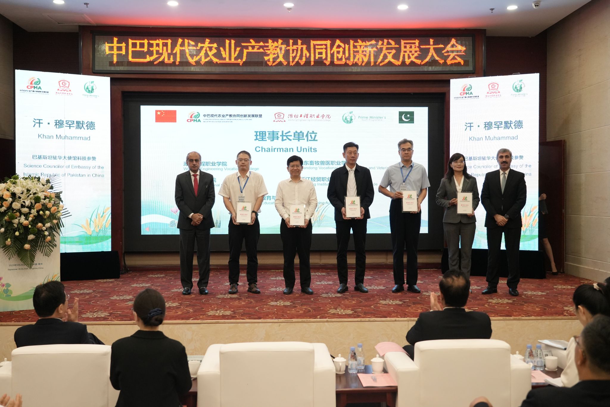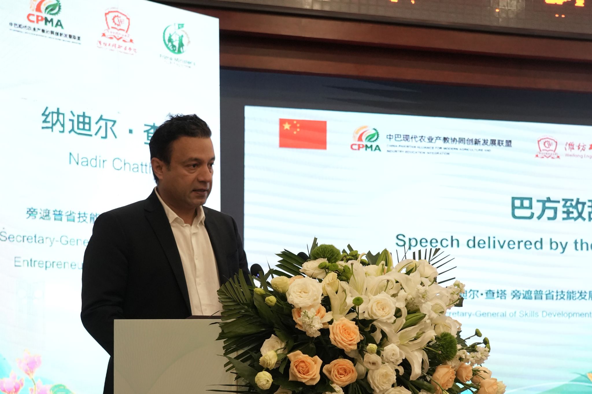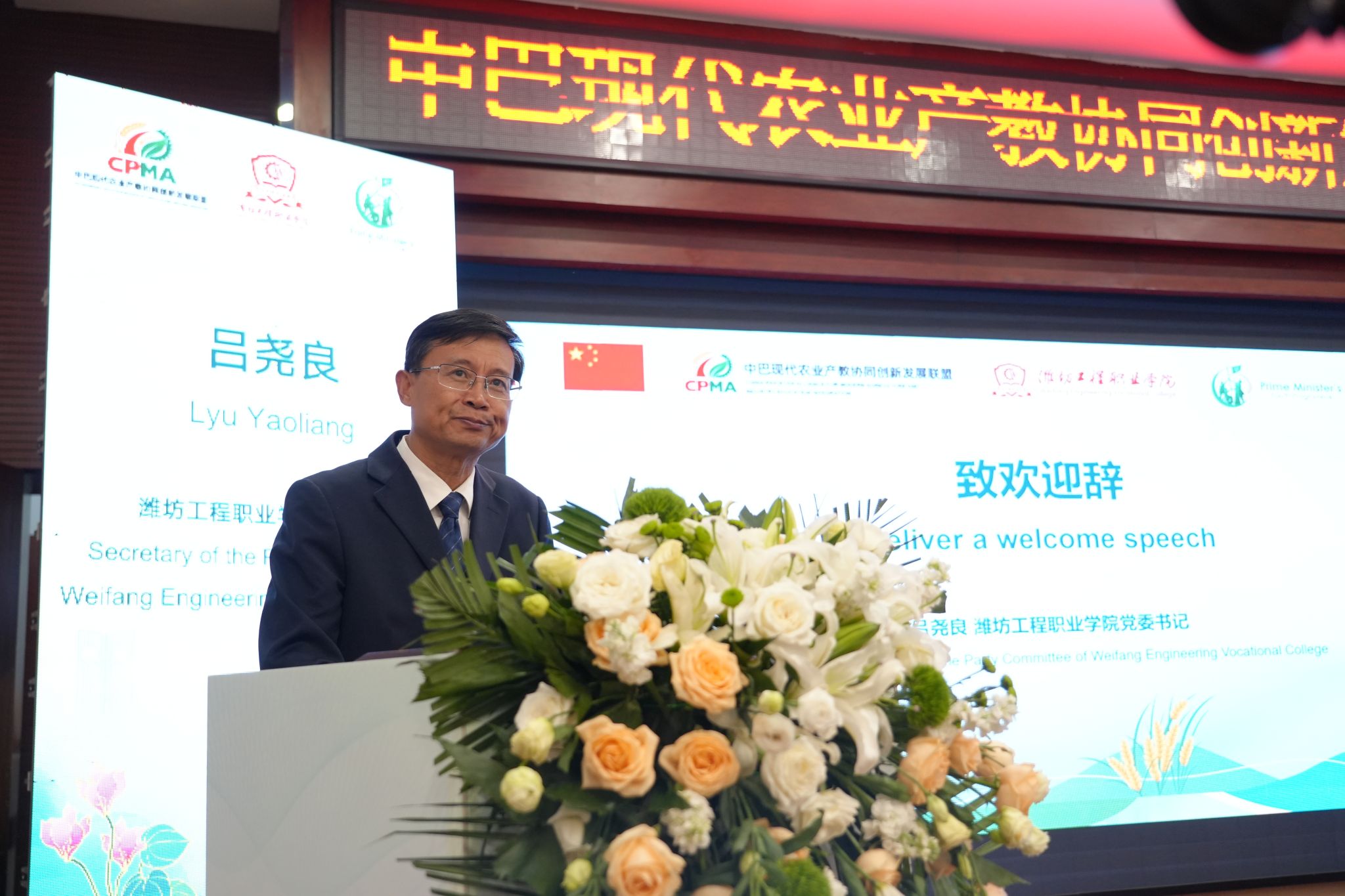 巴基斯坦驻华大使馆科技参赞汗·穆罕默德,巴基斯坦旁遮普省技能发展与创业部秘书长纳迪尔·查塔出席大会并致辞;中国国际投资促进会副会长袁建民发表视频讲话;潍坊市人民政府党组成员、副市长狄波出席大会并致辞,宣布“中巴现代农业产教协同创新发展联盟”成立;学院党委书记吕尧良致欢迎辞,党委委员、副院长赵凤卿主持大会。