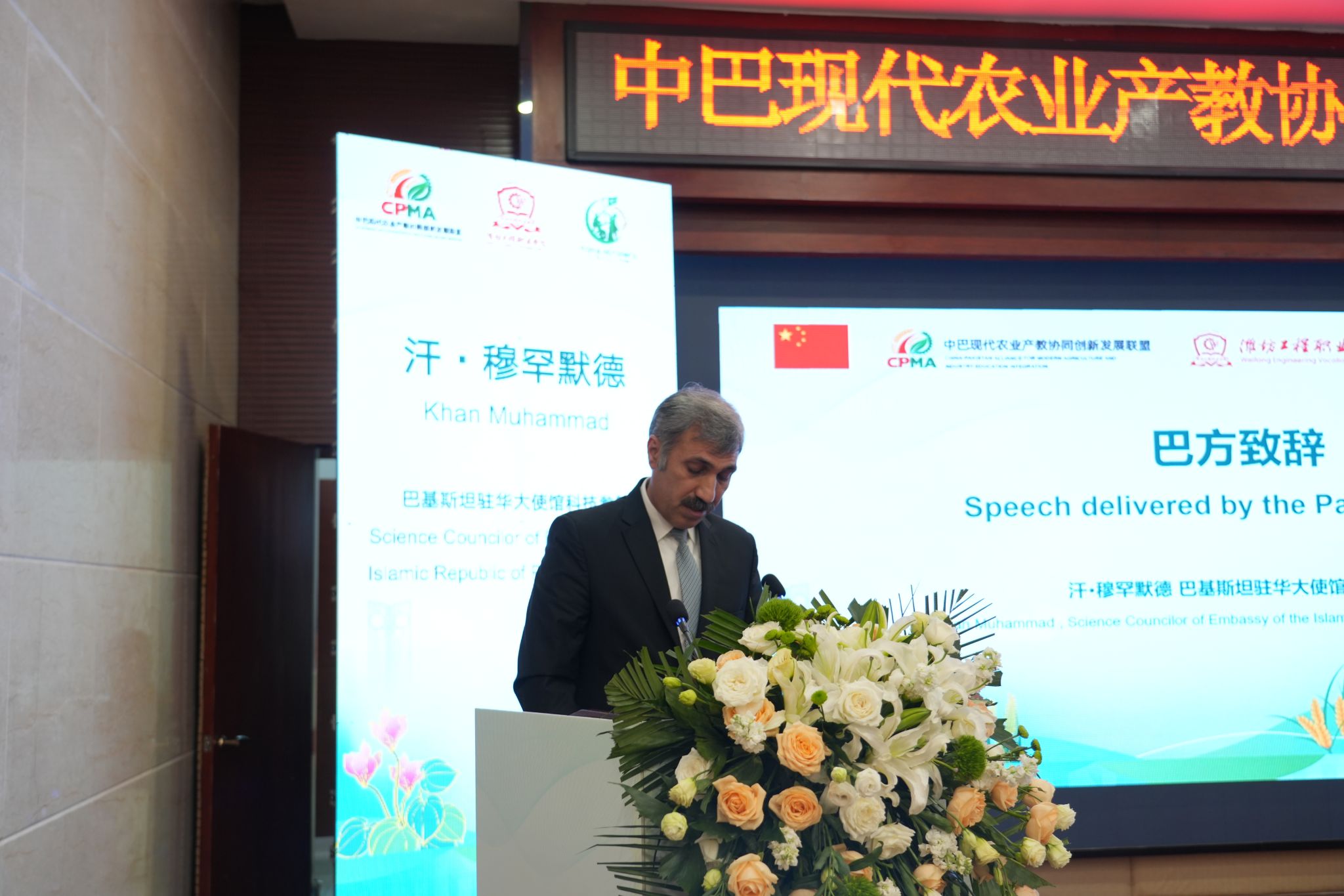 汗·穆罕默德代表巴基斯坦驻华大使馆向大会主办方表示诚挚的感谢。他指出,农业是巴基斯坦的经济命脉,推动科技优势与社会需求相结合对于巴基斯坦的农业发展尤为迫切;与以潍坊工程职业学院为代表的中国职业院校以及农业科研机构、企业在农业科技、职业培训等方面开展合作,能够为巴基斯坦的发展绘就更大的蓝图。