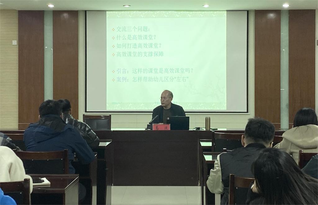 本次培训会是学院新教师教学能力提升系列培训活动之一,邀请教师教育学院高波教授作专题报告。高波以《如何打造高效课堂——以<幼儿游戏>课程为例》为题,与青年教师交流分享了“什么是高效课堂”“如何打造高效课堂”“如何支撑保障高效课堂”等方面的认知和策略。