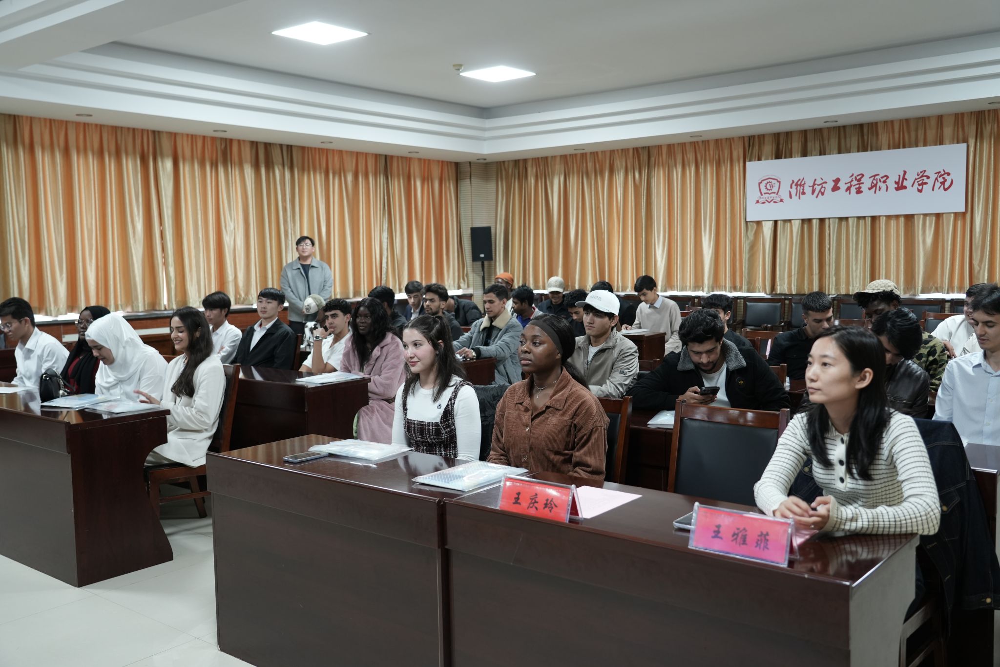 王忠山在致辞中向来自十多个国家的2025级国际学生表示欢迎,介绍了学院基本情况及国际化办学成果,希望国际学生尽快制定学习规划,课堂上专注求知,实践中主动探索;要珍惜学习机会,始终保持对专业的热爱,打牢专业基础;要积极参与实训实践,以“精益求精”的态度突破自我、超越自我,努力成长为高素质人才;要积极争做“潍工故事”的讲述者、“中国故事”的传播者,用所见所闻、所思所感,搭建起连接中国与世界的友谊之桥,成为跨国文化交流的优秀使者。王忠山为国际学生颁发潍坊工程职业学院学生证和学习礼包。