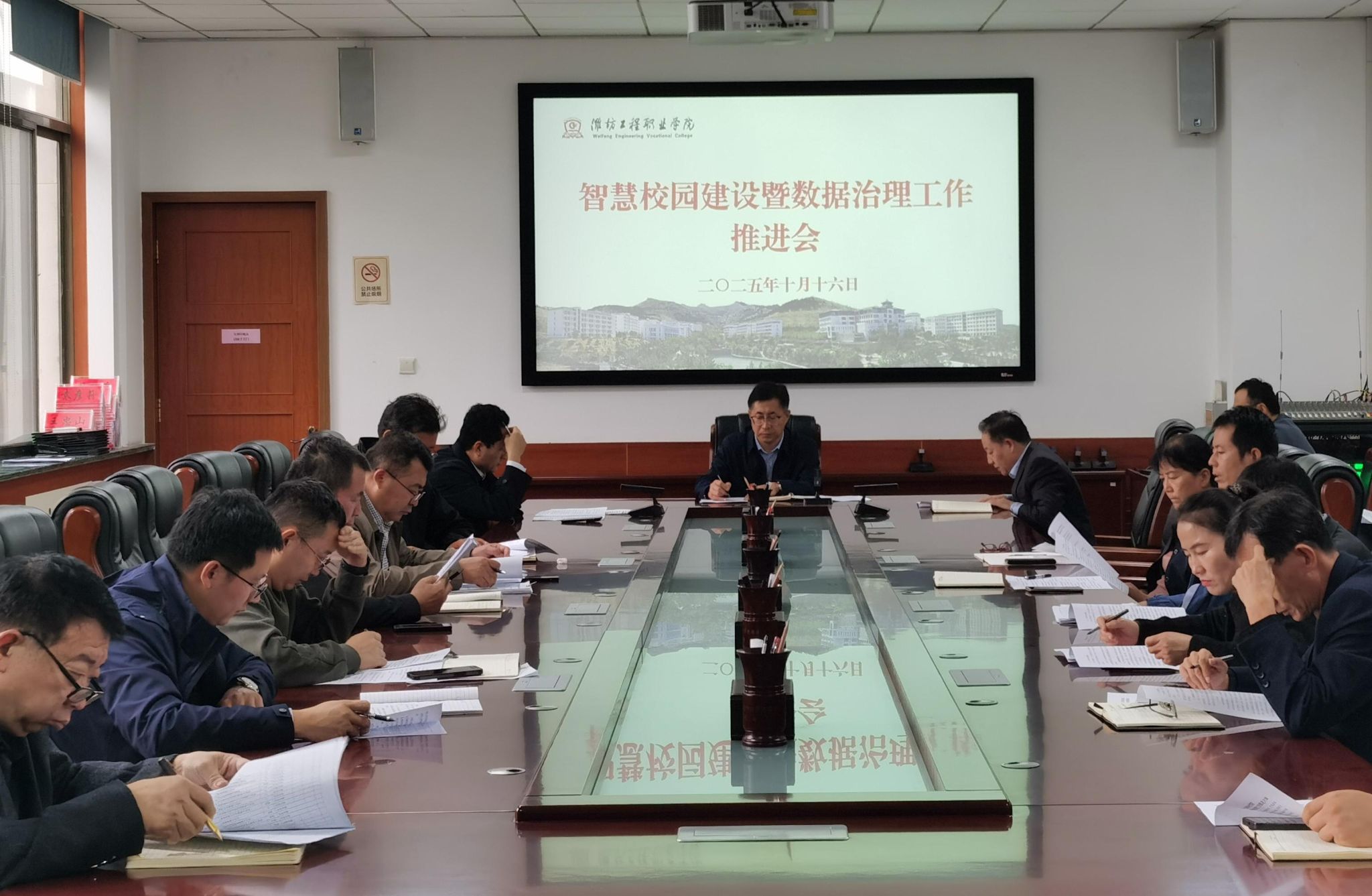会上,网络信息中心负责同志汇报了前期智慧校园建设及数据治理工作进展情况,对后期工作推进方案、任务分工、工作要求等进行了说明。