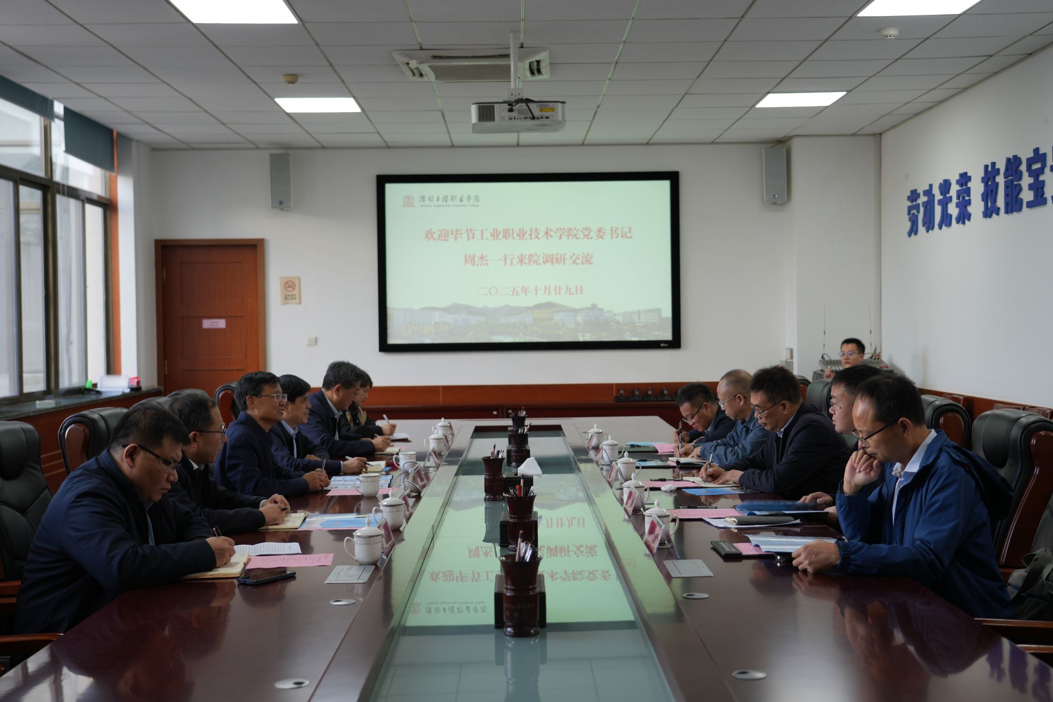 10月29日,毕节工业职业技术学院党委书记周杰,党委委员、副院长吴家文一行来院考察交流。党委书记吕尧良以及院领导王金明、卜令冲、阎保华出席活动,教务处、机电工程学院相关负责同志参加。