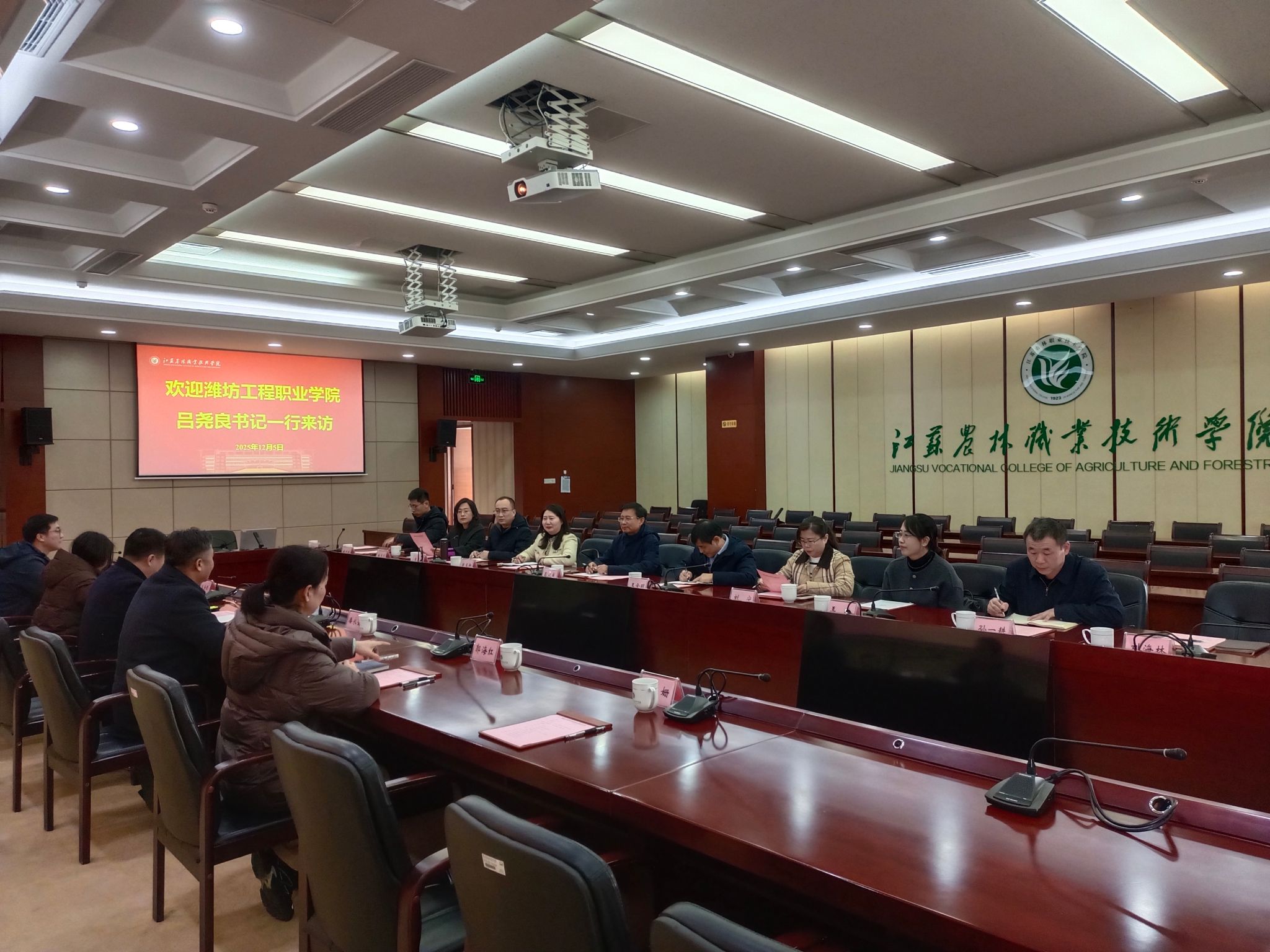为学习先进办学经验,加快国家和省级高水平专业群建设,推动学院内涵式高质量发展,12月4日—5日,学院党委书记吕尧良带队赴江苏农林职业技术学院开展交流学习。校务咨询指导委员会主任王金明,党委委员、副院长赵凤卿,教务处、产教融合处、发展规划处、机电工程学院、农林科技学院、信息工程学院有关负责人参加交流学习。