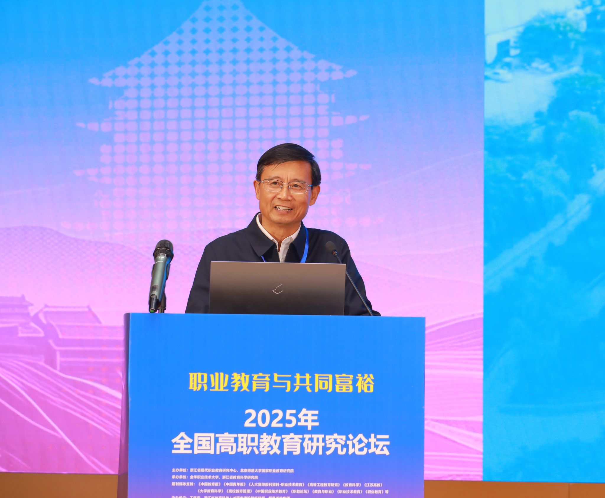 12月6日至8日,由浙江省现代职业教育研究中心、北京师范大学国家职业教育研究院主办,金华职业技术大学、浙江省教育科学研究院联合承办的“2025全国高职教育研究论坛”在浙江金华成功举办。教育部职业教育发展中心副主任黄辉,教育部教育质量评估中心职业教育评估处处长郭栋,浙江省教育厅职成教处处长陈达等领导莅临现场指导。来自高校、科研院所和学术期刊的330余人出席论坛。学院党委书记吕尧良受邀参会并作报告。党委委员、副院长赵凤卿,产教融合处、经济管理学院、教师教育学院有关负责人参加论坛。