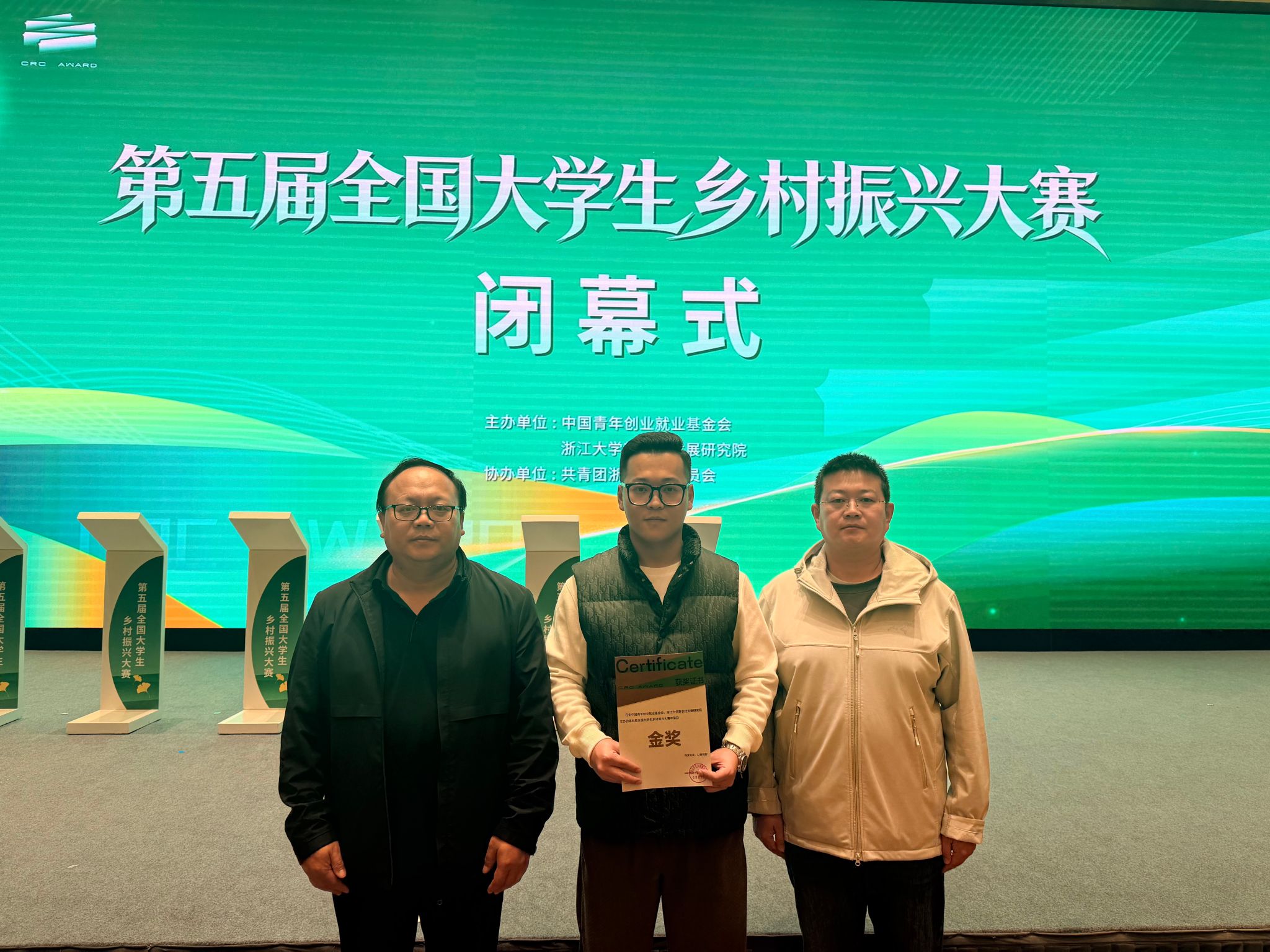 第五届全国大学生乡村振兴大赛总决赛由中国青年创业就业基金会与浙江大学新农村发展研究院主办,聚焦乡村发展实际问题,旨在鼓励高校学子深入乡村、服务乡村,通过创新实践为乡村振兴注入青春动能。本届大赛共吸引全国数百所高校、逾万支团队参与。经过校级选拔、省级推荐和全国总决赛的层层比拼,我院参赛项目凭借扎实的调研基础、切实可行的解决方案与富有感染力的现场展示,在激烈竞争中脱颖而出,斩获金奖。