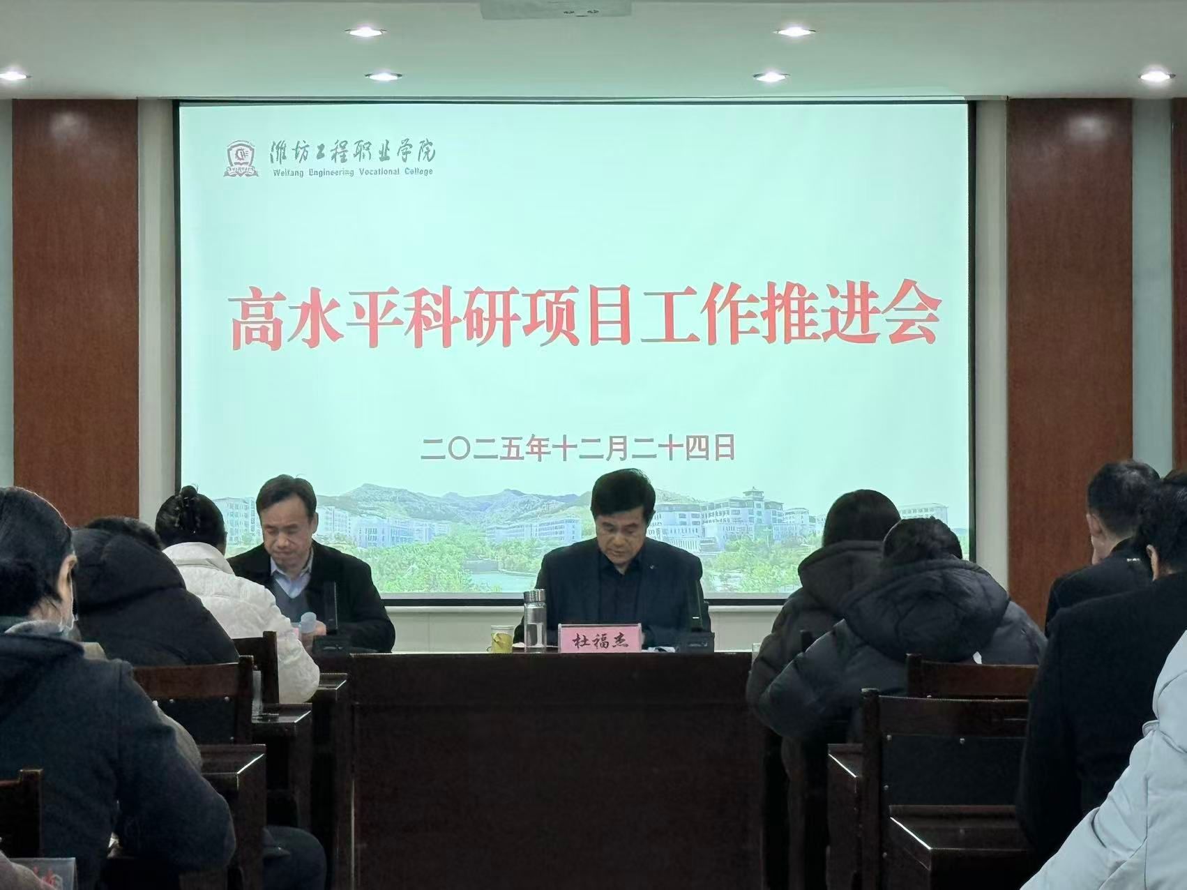 为进一步推动高水平科研项目建设,部署下一阶段科研攻关重点任务,12月24日,学院召开高水平科研项目工作推进会。党委副书记杜福杰出席会议。科技处、各二级学院(部)主要负责人,以及科研骨干教师代表参会。