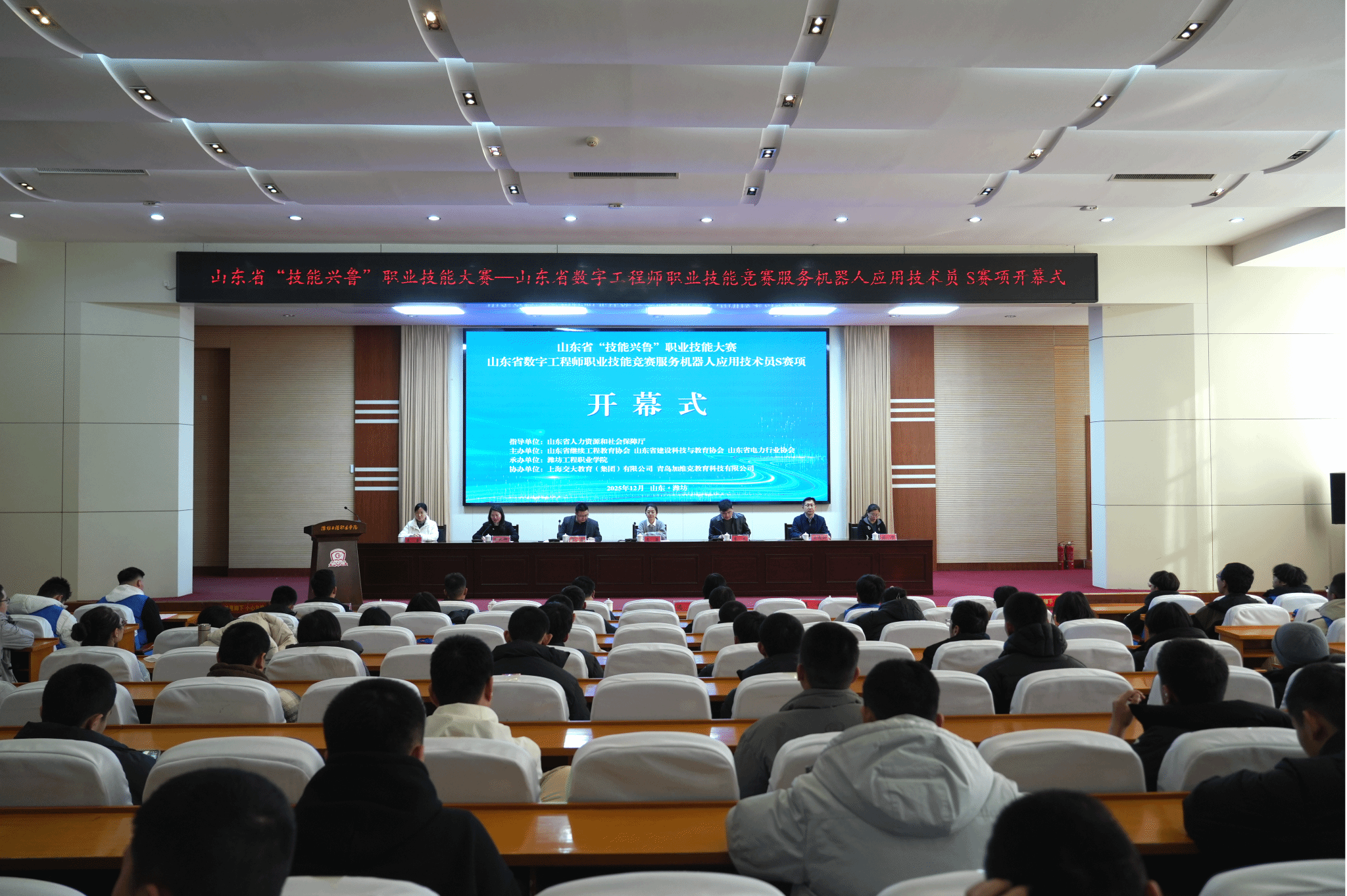 12月26日-27日,山东省“技能兴鲁”职业技能大赛—山东省数字工程师职业技能竞赛服务机器人应用技术员S赛项在我院成功举办,院长王忠山,党委委员、副院长赵凤卿,山东省继续工程教育协会秘书长吴笛、山东省建设科技与教育协会副秘书长李允等出席开幕式,开幕式由赵凤卿主持。来自全省职业院校、企业等100余名参赛选手及领队参加。我院师生分获职工(教师)组和学生组一等奖、二等奖、三等奖各2项。