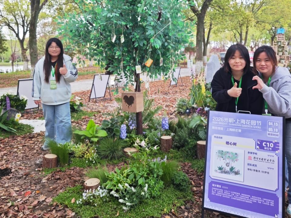 近日,2026光明•上海花园节大学生公益展圆满落幕,由我院农林科技学院教师贾建玲指导,学生李悦、李鲁洋、孙梦佳共同完成的作品《栖心树》获大赛一等奖。