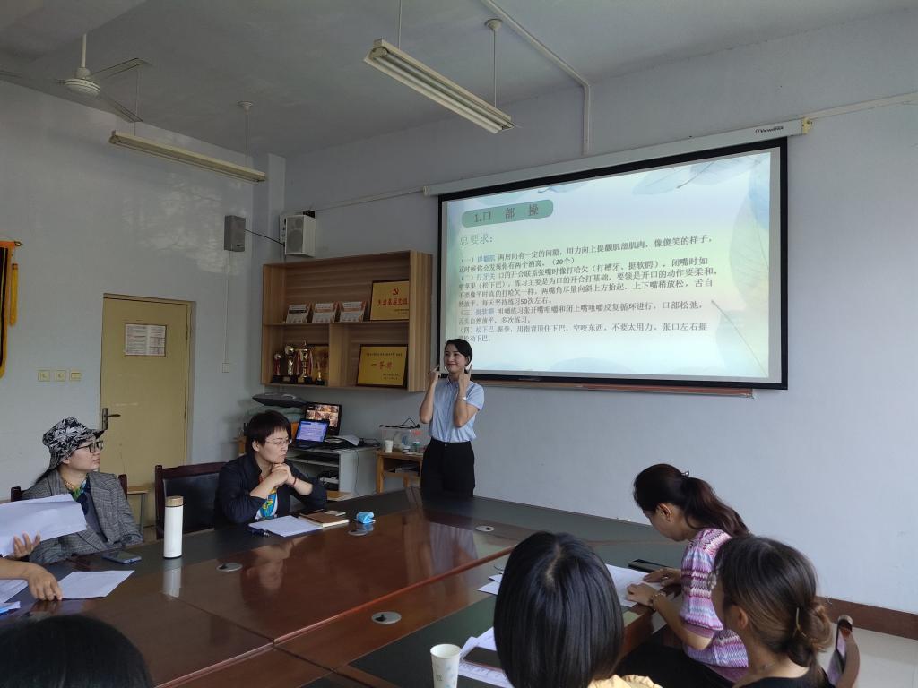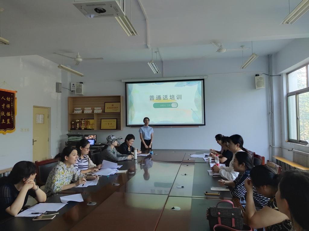 培训中,王帅对普通话的定义进行了基本的介绍,带领全体教师开展了精彩纷呈的普通话基本功训练,开展了易错字词的辨读和短文朗读,讲解了短文朗读的技巧和要领,并以“秋天”为例,示范了命题说话的讲述要领。活动中,通过绕口令等互动,教师们的学习积极性得到了充分调动。此次培训,一方面强化了教师教育学院教师的普通话应用意识;也有利于推广普通话良好风气的形成,有效推动推广普通话工作落地落实,取得实效。