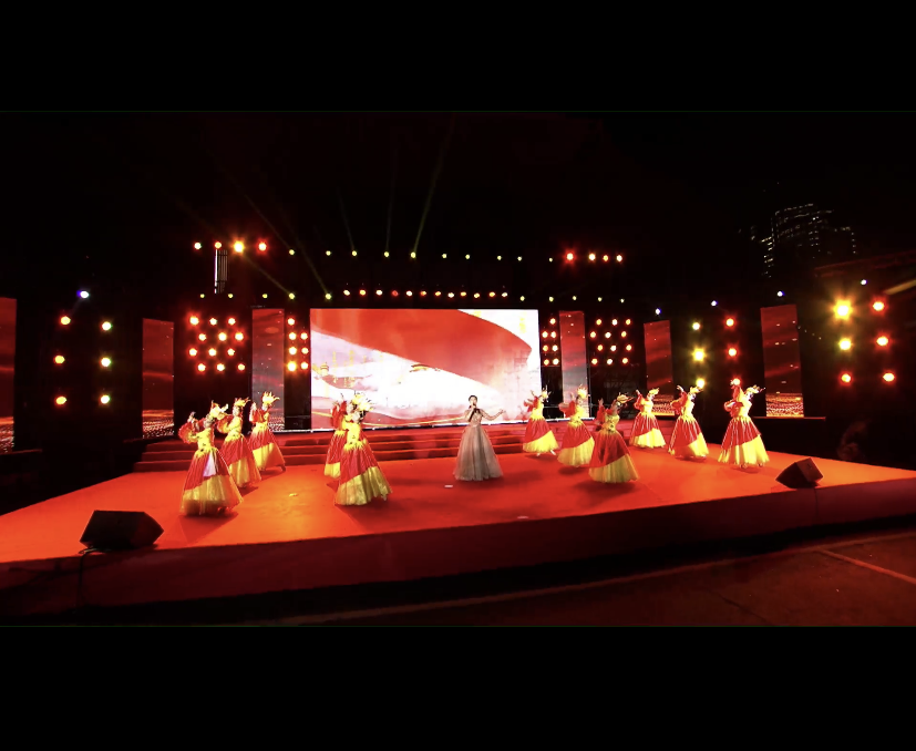 歌会现场,一幅幅歌颂我党伟大壮阔的历史画卷随着激昂优美的音乐徐徐展开,一曲曲讴歌伟大祖国的赞歌飘扬,凤凰艺术学院教师代表杨哲和12名学生代表,以华美绚丽的歌伴舞形式带来一曲《我的深情为你守候》,寄托了对祖国母亲深切的热爱和情感,对共产党人不懈奋斗、改天换地的深深敬意,演出现场反响良好,充分展现出学院师生初心不改、传承红色的青春风貌。