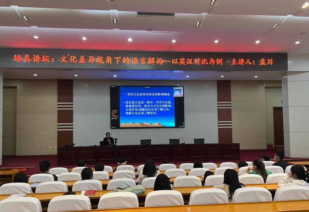 4月30日晚,图书馆邀请基础教学部孟川老师,在学术报告厅为师生们带来了一场精彩的讲座。本次讲座主题为“文化差异视角下的语言解构——以英汉对比为例”,讲座在腾讯会议同步线上直播。