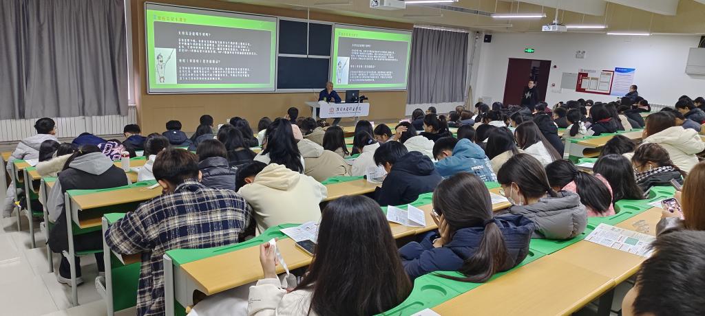 潍坊市计生协项目部部长姚军带队,在培德楼阶梯教室举行痤疮防治科普知识公益讲座,潍坊市皮防所皮肤美容外科主任郭丙辰从痤疮(青春痘)产生的诱因、预防手段、治疗方法等方面作了具体的讲解,300余名学生参加讲座。潍坊市皮防所皮肤科副主任医师韩志强带领潍坊市皮防所医护人员,在“一站式”学生社区开展痤疮和常见皮肤病防治校园义诊,学生有序排队咨询就诊。