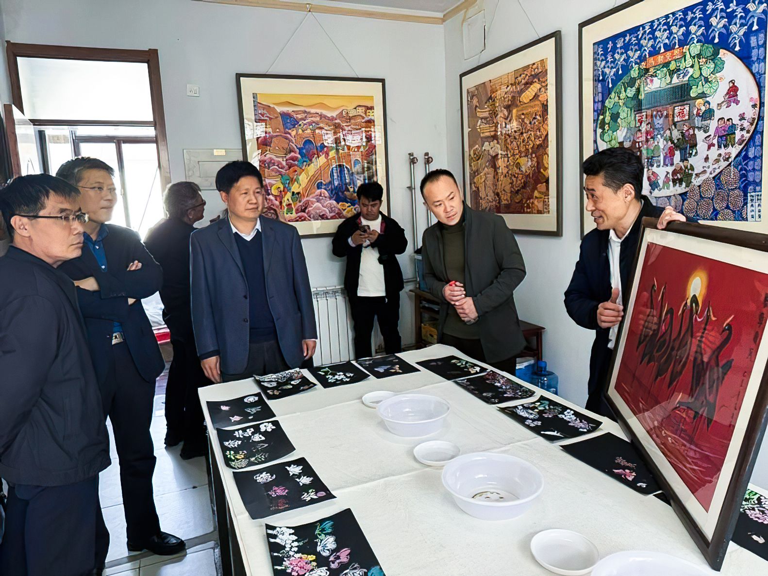 会上,凤凰艺术学院相关负责同志分享了学院在推广和传承农民画方面的具体举措与成果。青州市相关负责同志介绍了青州农民画的发展现状与未来规划,强调青州农民画作为非物质文化遗产,对展示本土文化具有重要价值和意义,并从校地合作、品牌建设及社会效益方面汇报了“非遗进校园”活动的开展情况与推进措施。与会人员围绕农民画的传承、创新与教育融合等议题展开深入讨论。会后,与会人员参观了青州农民画非遗工坊,观摩了农民画作品和衍生品、教材及学生作品。