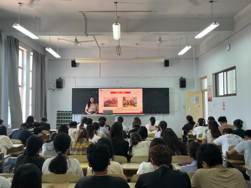 孟繁青对《党史学习教育工作条例》进行深入解读,着重阐释了条例颁布的重大意义、党史学习教育工作的主要任务等,并从“沉心学真知”“细心觅真迹”“潜心践真行”三方面强调了学习党史要坚持学用结合,号召青年大学生潜心学习党史,厚植爱国情怀,做有理想、敢担当、能吃苦、肯奋斗的新时代好青年。赵含岳以“中国共产党党史”为主题,带领学生重温了中国共产党一百年来走过的艰辛历程和动人故事,引导广大青年铭记奋斗历程,担当历史使命,从党的奋斗历史中汲取前进力量,为建设社会主义现代化强国而不懈奋斗。