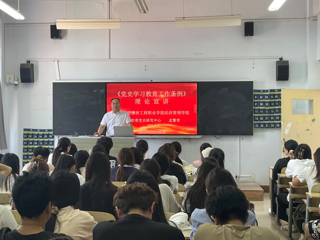 6月13日,经济管理学院举办入党积极分子培训讲座。讲座由青州市委党史研究中心党支部书记、主任孟繁青,青州市委党史研究中心科员赵含岳担任主讲。