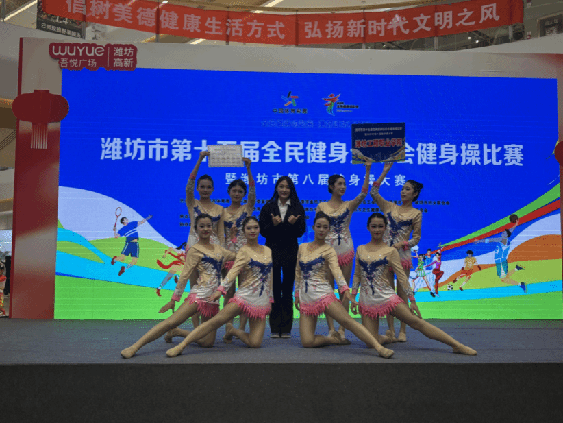 10月17日至19日,由潍坊市体育局、潍坊市体育局共同举办的潍坊市第十五届全民健身运动会健身操比赛圆满落幕,我院健美操舞队获得轻器械健身操、爵士啦啦操、排舞三个项目第一名的优异成绩。