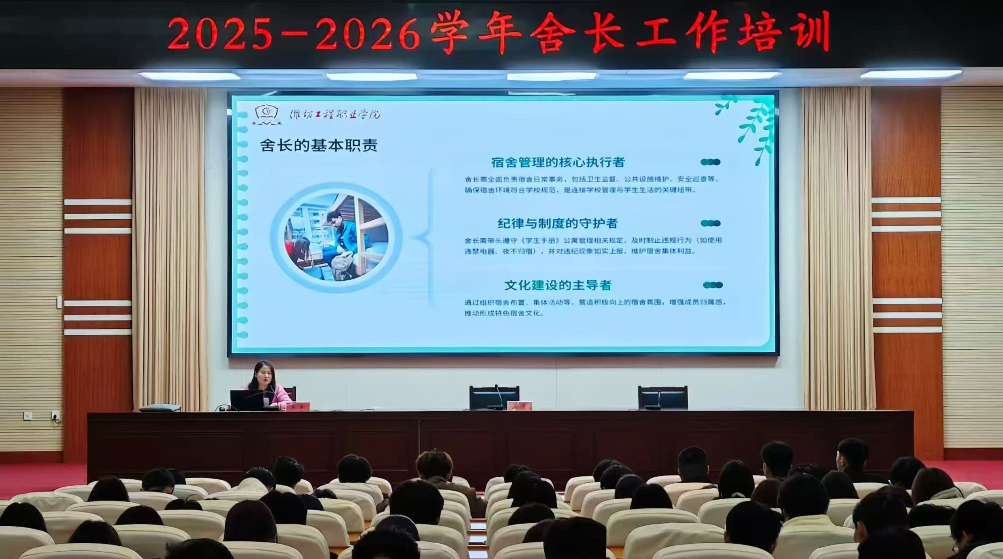 为深入推进“一站式”学生社区综合管理模式建设,系统提升寝室长的综合能力,打造一支高效的宿舍管理骨干队伍,11月7日-14日期间,学生工作处在学术报告厅组织开展2025-2026学年宿舍长业务培训会,本次培训分四场进行,邀请二级学院优秀辅导员、定向培养军士老师担任主讲人。2025级新生宿舍长、校院两级寓管会成员近2000人参加培训。