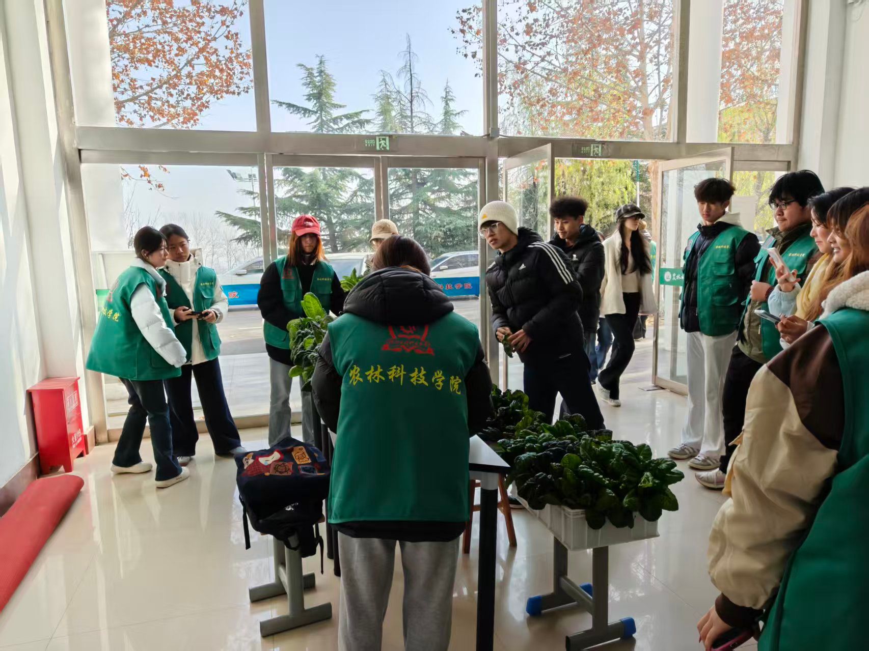 此次活动的蔬菜由农林科技学院学生依托专属实践种植基地,在专业教师指导下,全程参与选种、管护等环节培育而成,凝聚着师生的专业心血与劳动智慧。活动中,师生自觉排起队伍,有序领取新鲜蔬菜,纷纷为农林科技学院的专业实践成果与暖心举动点赞。