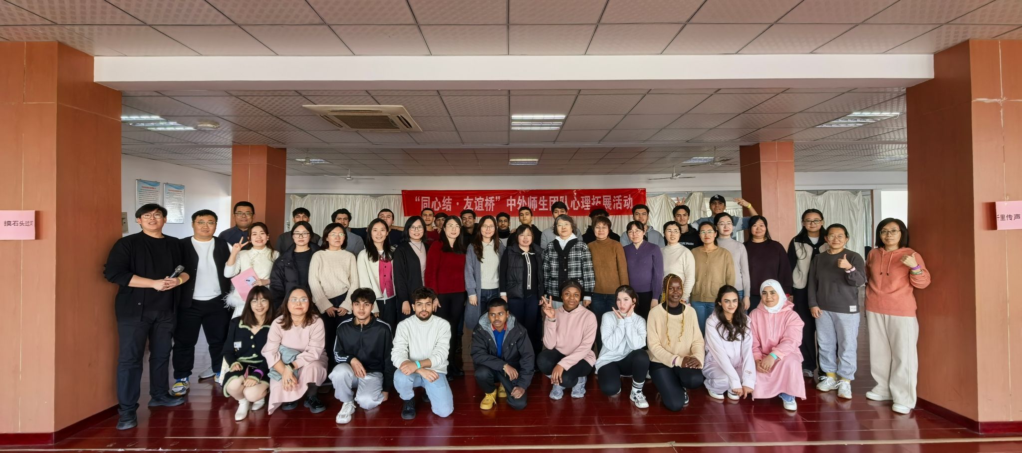 为促进中外师生交流,深化文化互鉴,关注学生心理健康,12月4日,国际合作与交流学院联合马克思主义学院组织开展了“同心结·友谊桥”中外师生团队心理拓展活动。活动以“沟通·协作·理解·关爱”为主题,50余名中外师生共同参与,在互动与合作中共筑友谊之桥。