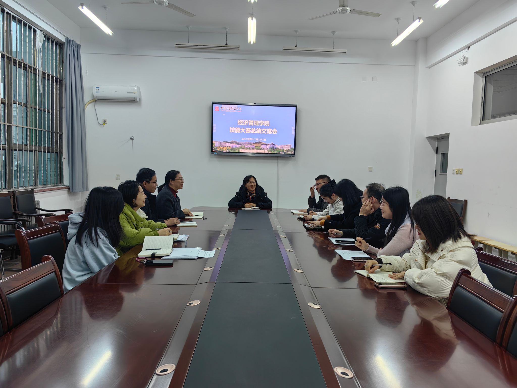 为系统总结参赛经验、凝聚奋进力量,12月22日,经济管理学院召开职业院校技能大赛总结交流会。经济管理学院相关负责人、各专业教研室主任及全体大赛指导教师参加会议。